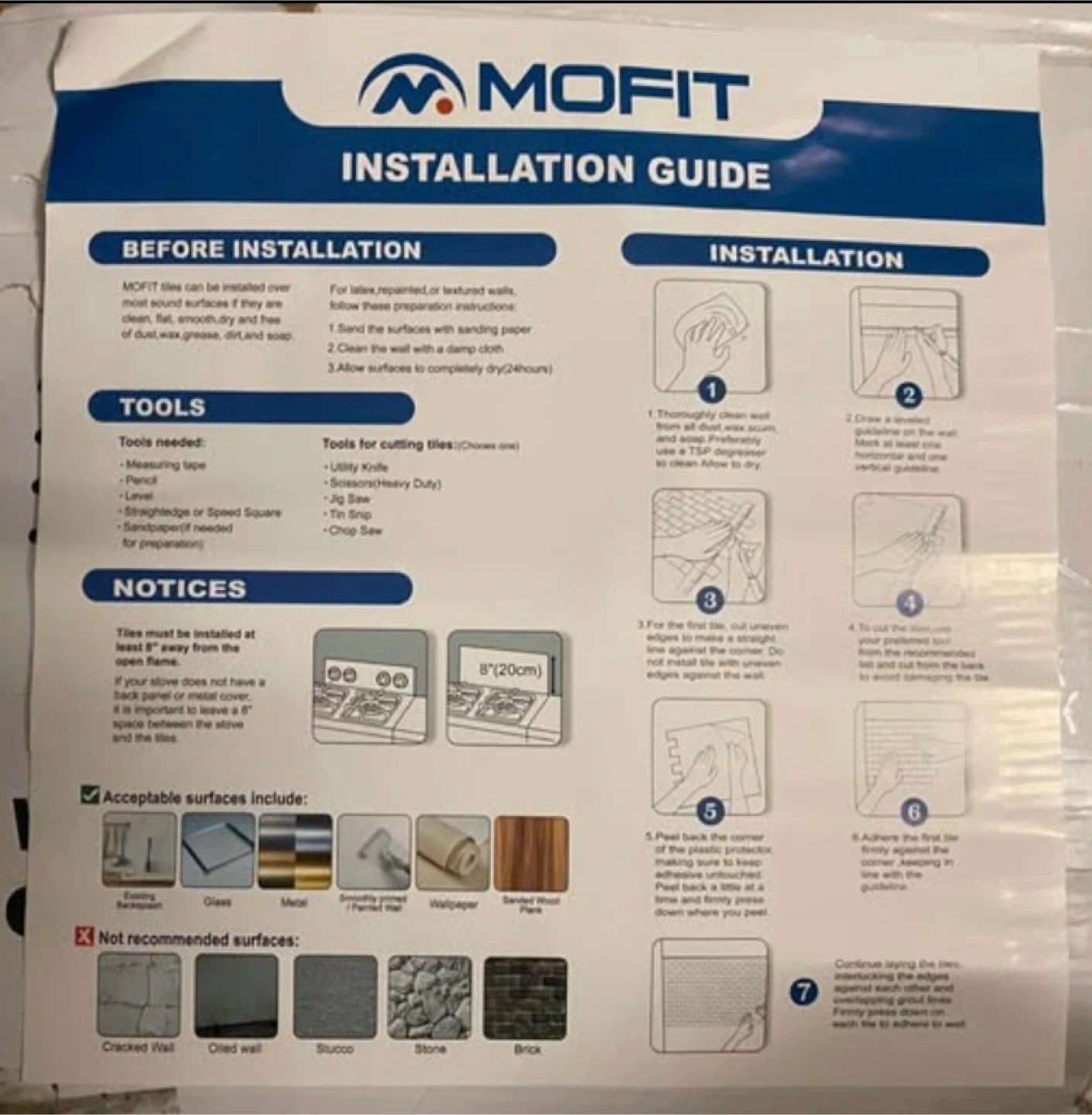 36Mofit premium peel & stick wall tiles with a 3-D effect! These are easy to install and have 3X adhesive strength. They're also heat and moisture resistant. These dolomite white tiles will add a touch of elegance to any room