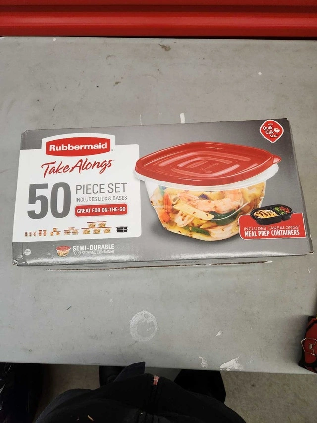 Offering a new, in-box Rubbermaid TakeAlongs 50-piece set. This set is great for meal prepping and on-the-go use, and includes a variety of lids and bases to keep your food fresh. The set is semi-durable and features Quik Clik Seal. Add some organization to your kitchen!