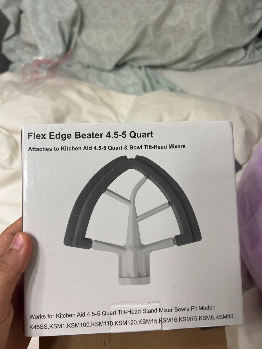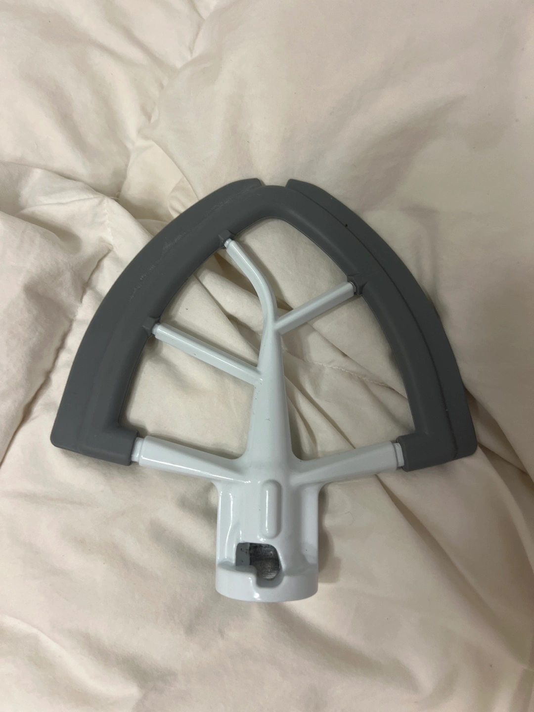 Brand new, never used Flex Edge Beater. Fits KitchenAid 4.5-5 quart tilt-head stand mixers. Compatible with models K45SS, KSM1, KSM100, KSM110, KSM120, KSM15, KSM16, KSM75, KSM8, KSM90. Grey and white.