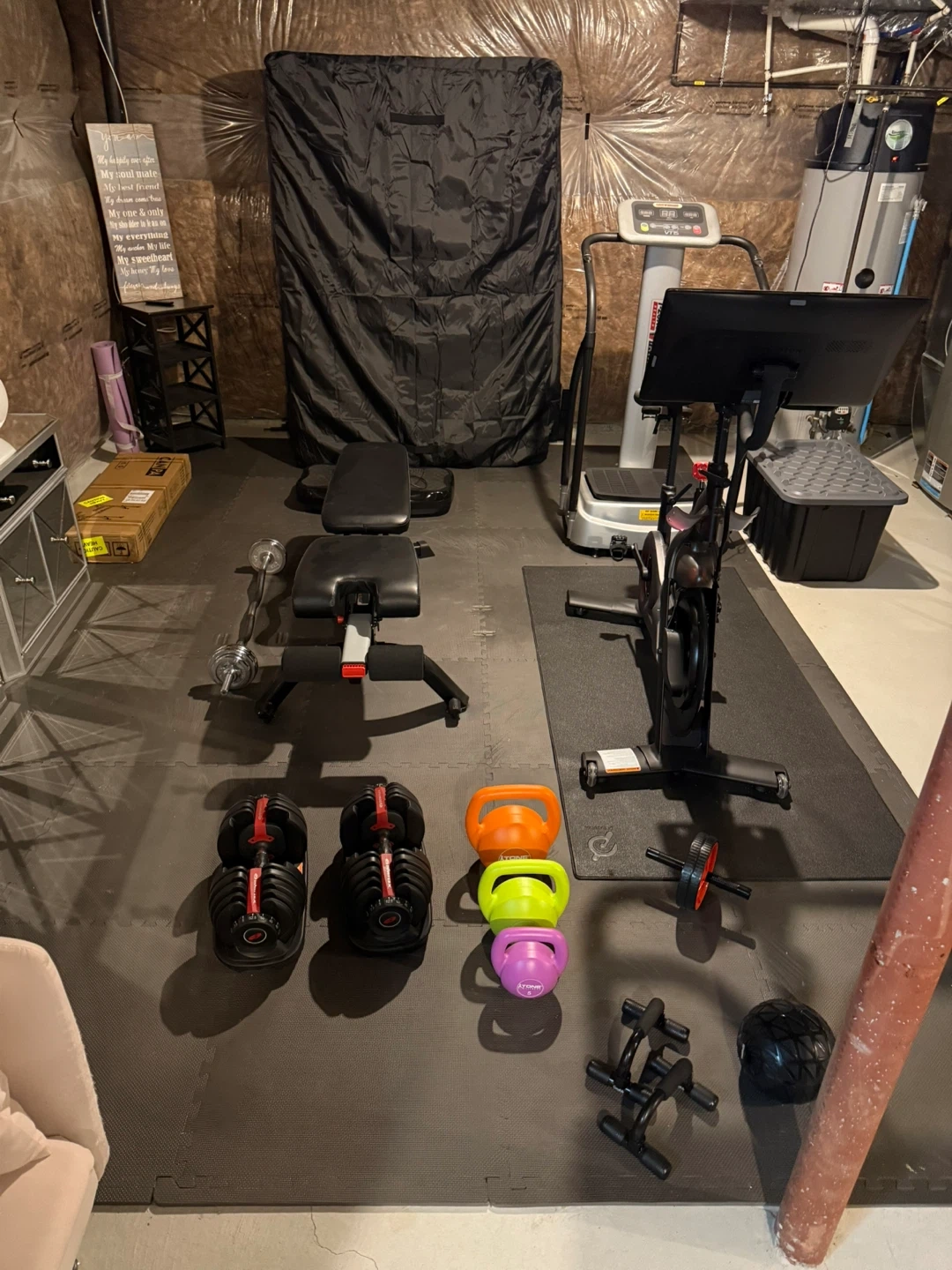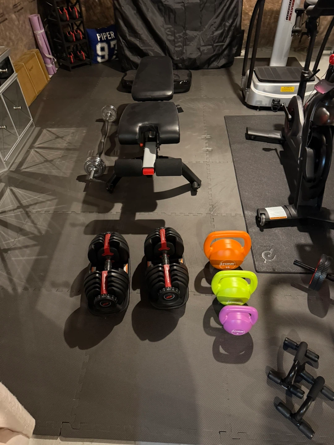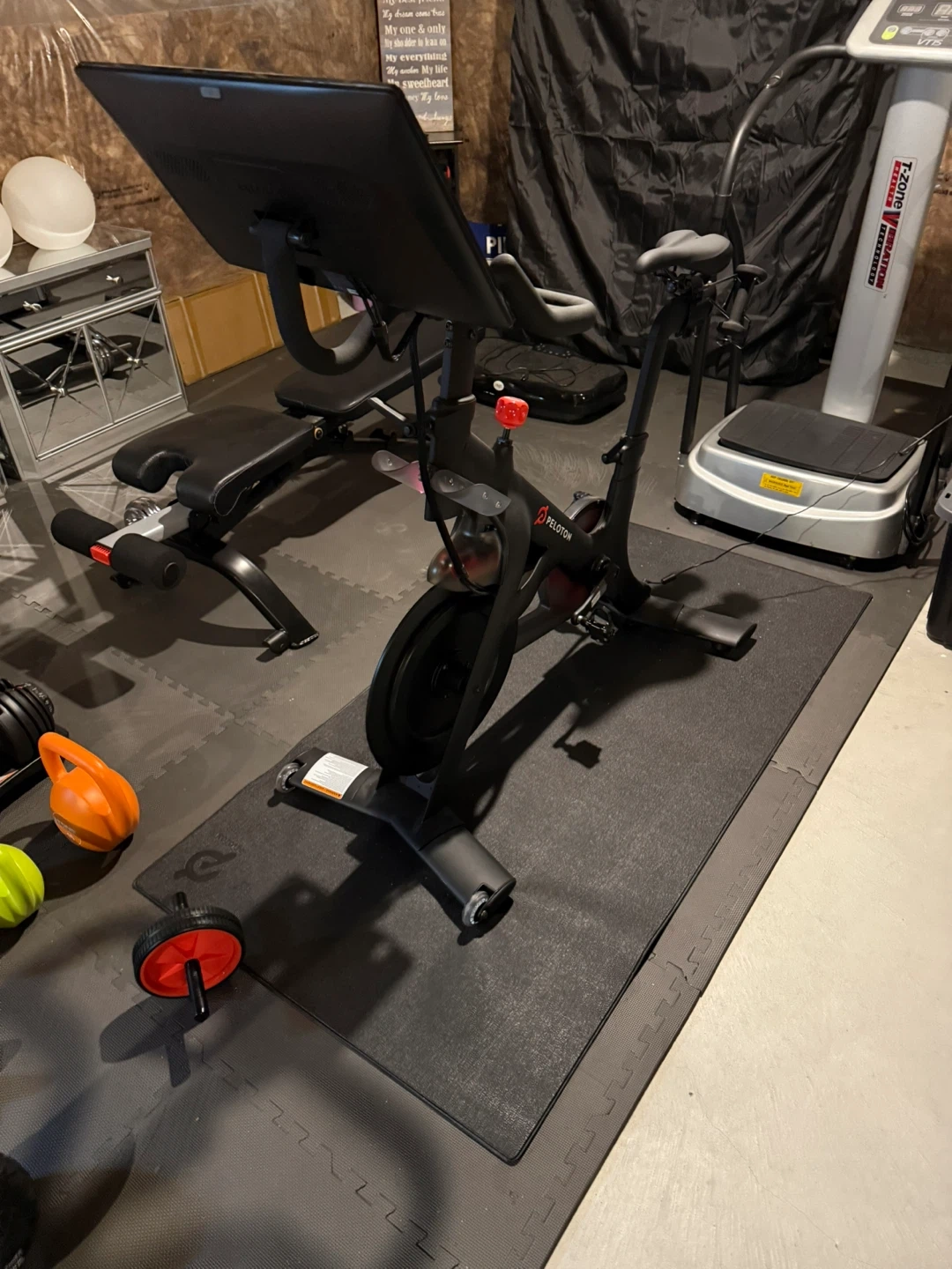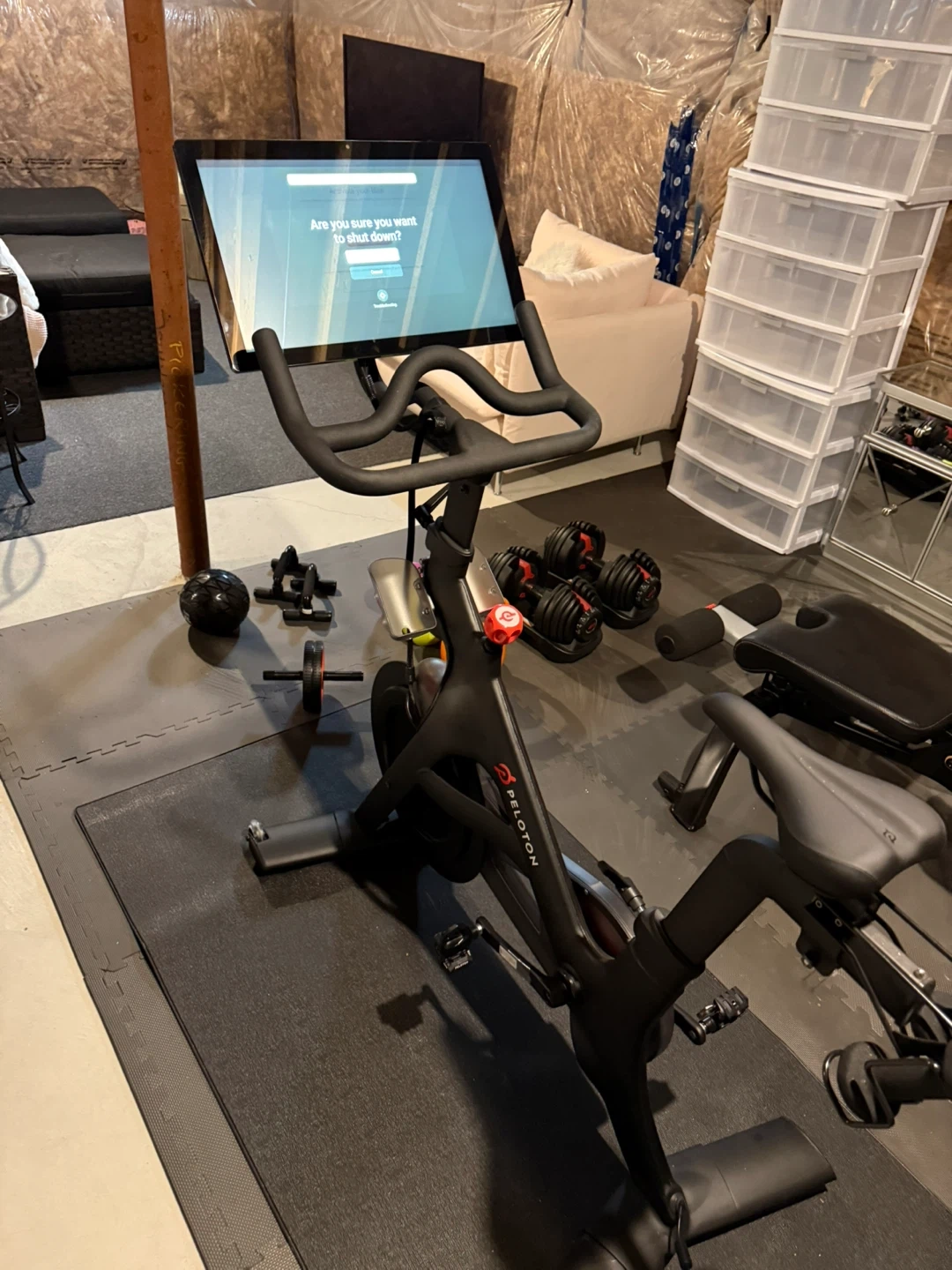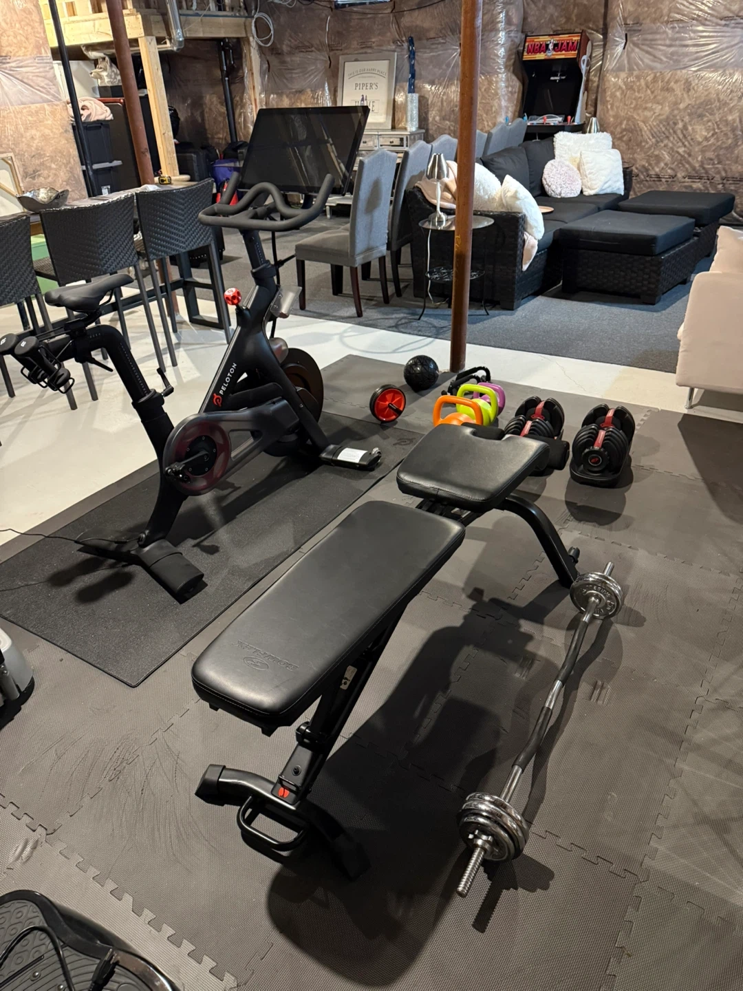Selling a Peloton stationary exercise bike. Great for getting a workout in at home! Also included are Bowflex Adjustable Dumbbells, Adjustable workout bench, barbell with weights, athletic gym foam flooring, and SEVERAL other workout gear including a T-Zone Vibration Machine