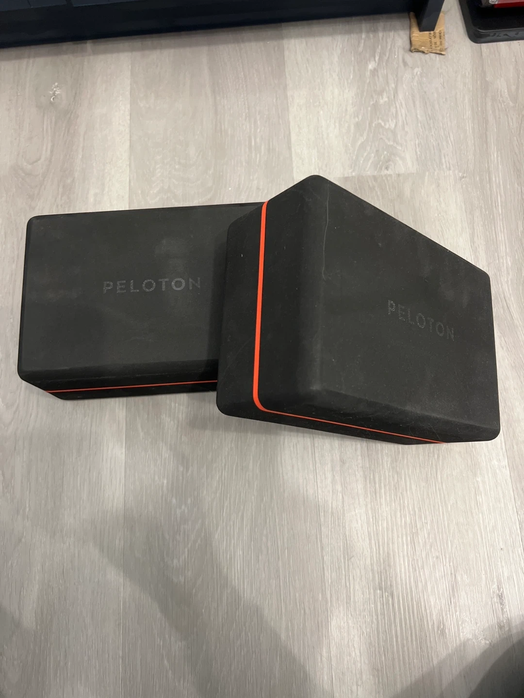 Selling a set of two Peloton yoga blocks! They are black with orange trim and in good condition. Perfect for adding support and stability to your yoga or Pilates practice