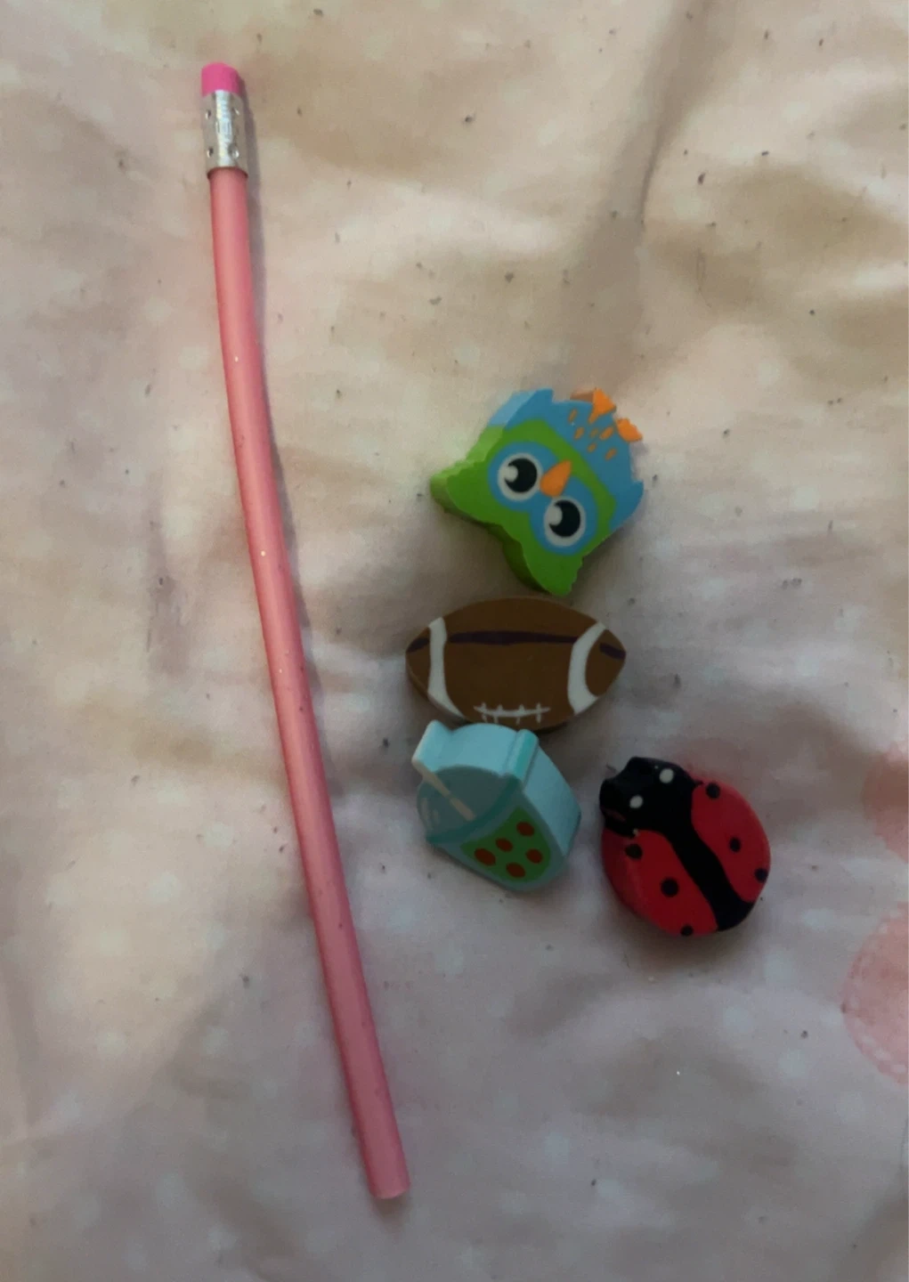 798Selling a pencil with a set of cute erasers! The erasers include a ladybug, football, bubble tea, and owl shape