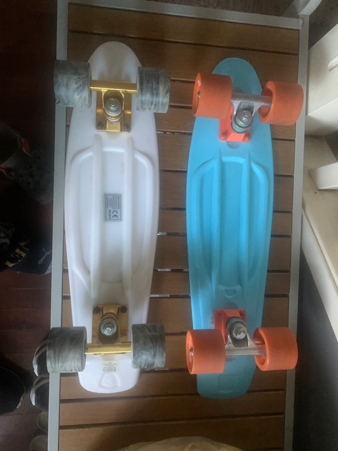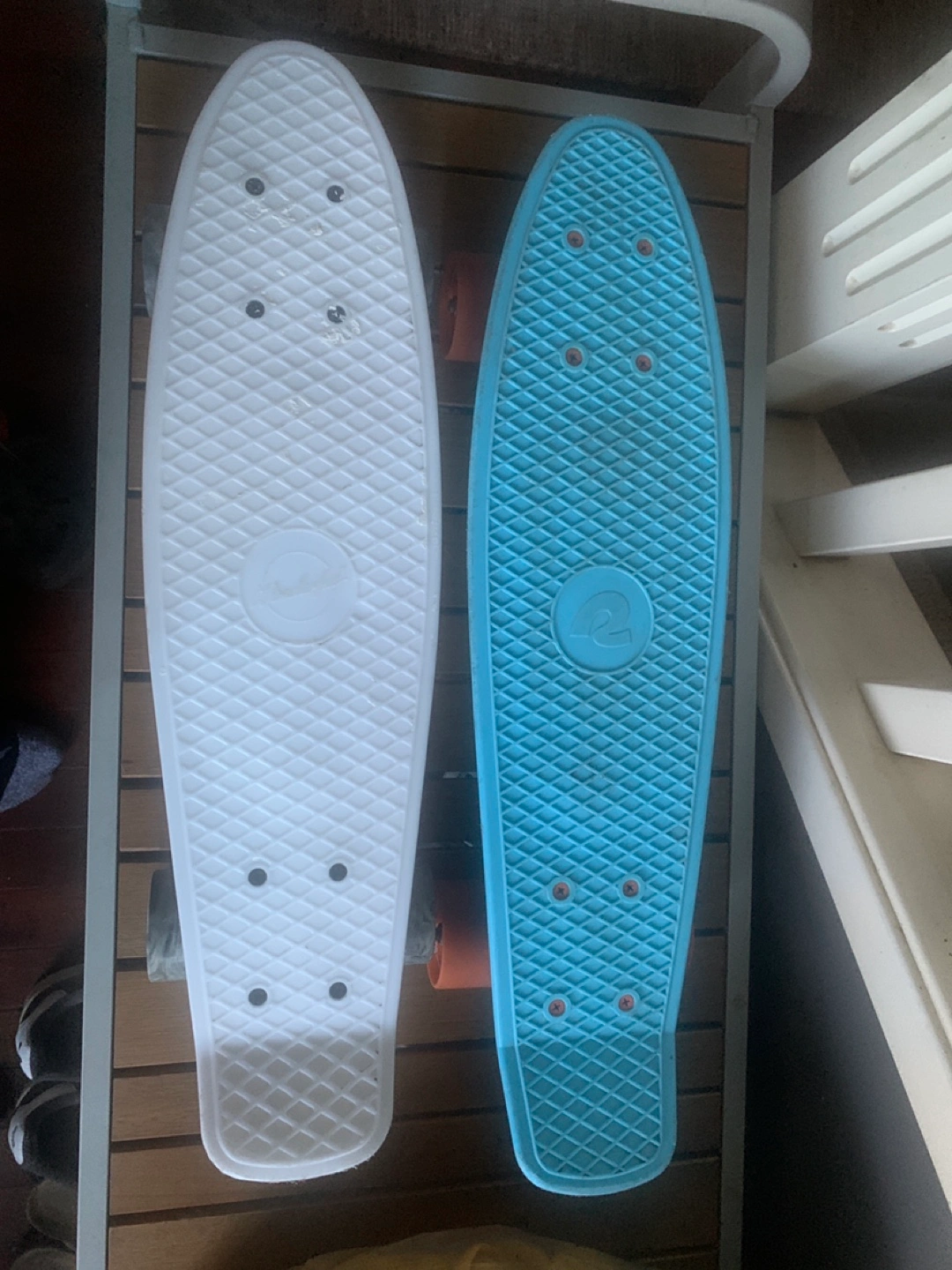 Selling two Penny boards! One is white and the other is a nice light blue. They're both in great shape and ready to roll. Perfect for cruising around town or hitting up the park. Get them both or just one, your choice!