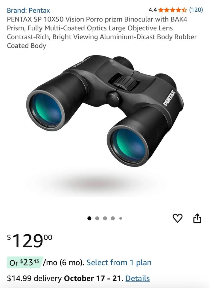 PENTAX SP 10X50 Vision Porro prizm Binocular with BAK4 Prism, Fully Multi-Coated Optics Large Objective Lens Contrast-Rich, Bright Viewing Aluminium-Dicast Body Rubber Coated Body Pickup near Steeles and Dufferin, cash only.