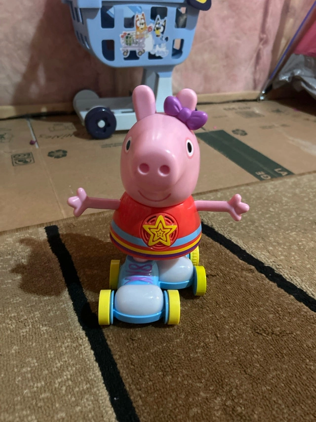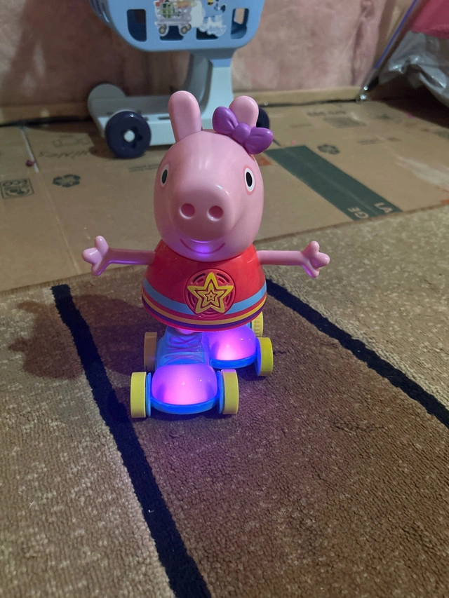 This pre-owned Peppa Pig toy is ready to roll into fun! Featuring Peppa on a skateboard with light-up action, it's sure to bring smiles and giggles to your little one's playtime. Though previously loved, it's in good condition and eager for new adventures. Specifications: * Character: Peppa Pig * Features: Light-up skateboard * Condition: Used This Peppa Pig toy is priced at $10, offering an affordable way to add some oink-tastic joy to your child's toy collection. Don't miss out – if the ad is up, it's available!