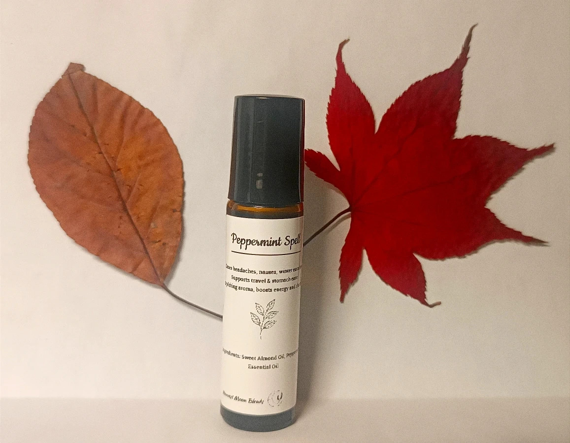 68Peppermint Spell Handcrafted Essential oil roller made with 100% natural ingredients: Sweet almond oil and Peppermint Essential Oil. It helps ease headaches, nausea, and winter earaches. It also supports motion sickness and can also be used on your tummy as to ease digestive issues. This roller is really helpful ror boosting energy and clarity with its delightful minty aroma.