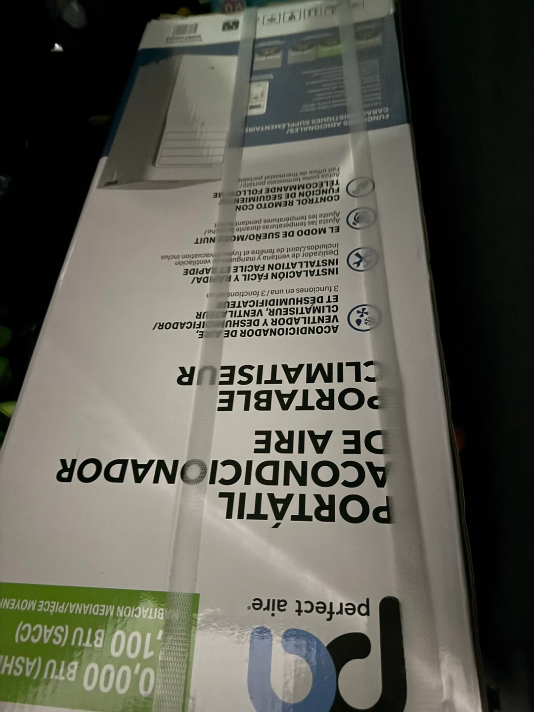 29Portable air conditioner by Perfect Aire. It features easy and quick installation with 3 functions in 1: cooling, dehumidifying, and fan. Perfect for a medium-sized room.