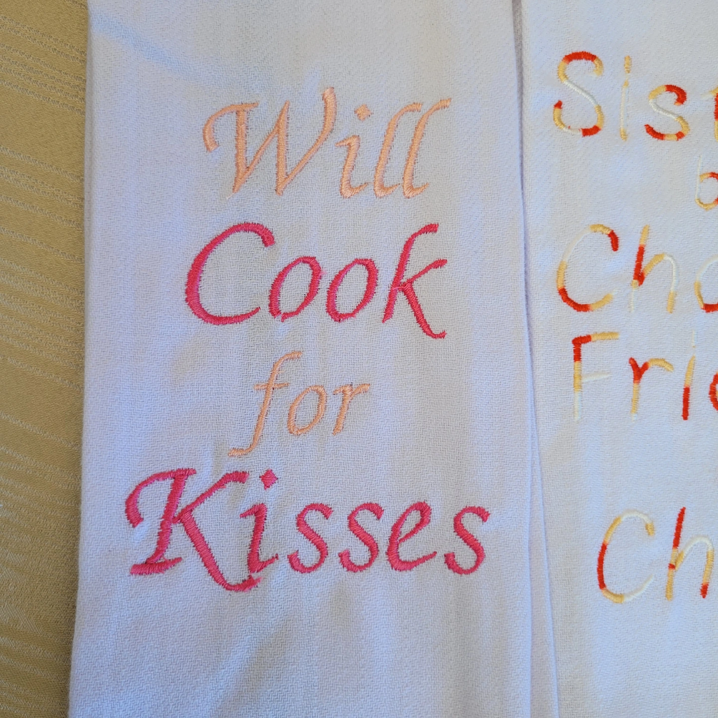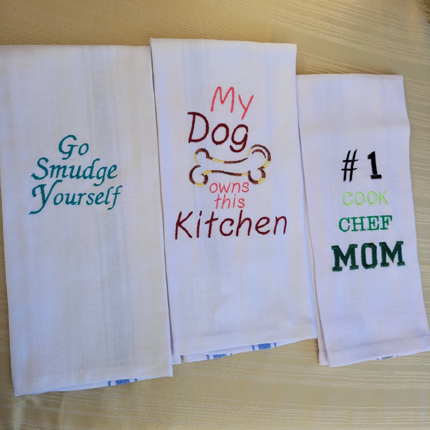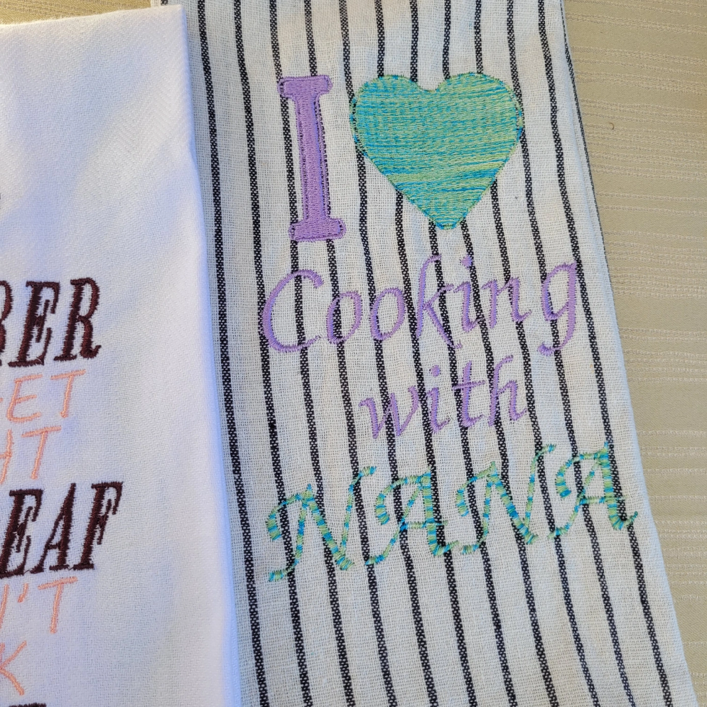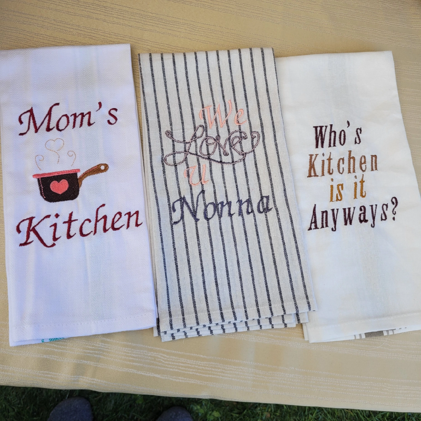 Perfect Gift Machine Embroidered by Me SilvaMarie 100% Cotton Tea Towels - Please See all pictures 8.00 or 2 for 15.00 May be able to Costomize for depending on what you would like! Please See all my Other Listings, Bundle & Save for a Better Deal! Located in Bradford, May be able to Meet, Shipping Offered at Buyers Expense, Please contact me for more Info & to make arrangements, sorry no holds without an ET, Thank you so much for Looking!