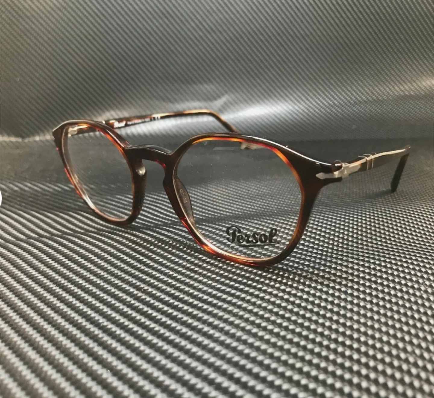 Stylish Persol glasses with a tortoise shell design. Perfect for a sophisticated look. Persol Eyeglasses Frames 3007-V-M 24 Tortoise Brown Round Full Rim 50-19-145 With original case