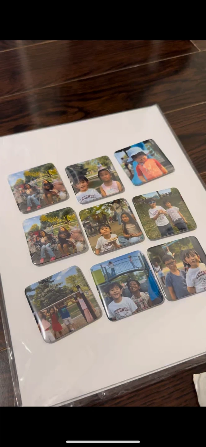 Capture your special moments and keep them close – right on your fridge! $3 per pc,minimum of 12pcs order 50mm square photo magnets πŸ’‘ Perfect For: Gift sets for birthdays, weddings, anniversaries Branding giveaways for businesses Holiday keepsakes Creative decor for home or office