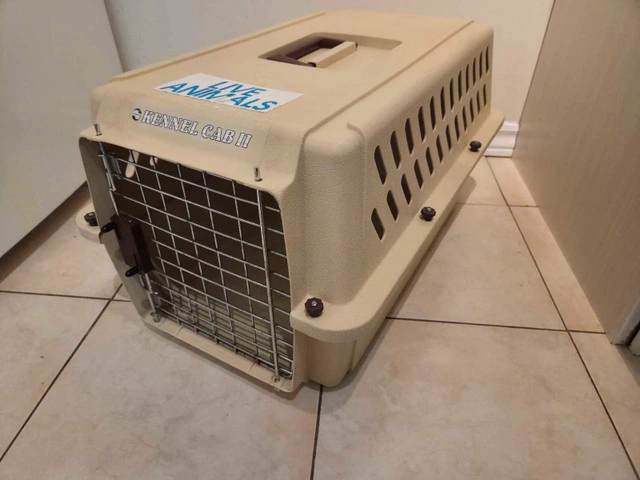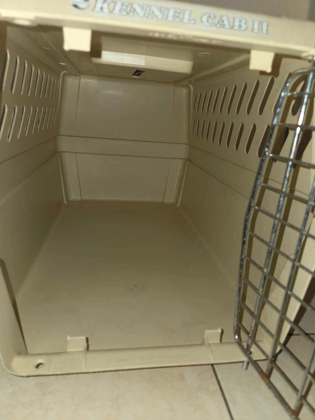 31This is a Kennel Cab II pet carrier, perfect for safely transporting your pet. It's sturdy and reliable, ready for your next adventure. Additional specs: * Model: Kennel Cab II * Durable plastic construction * Metal grille door * Ventilation on all sides Dimensions: 14" x 23" and 12" tall. Let me know if you're interested!