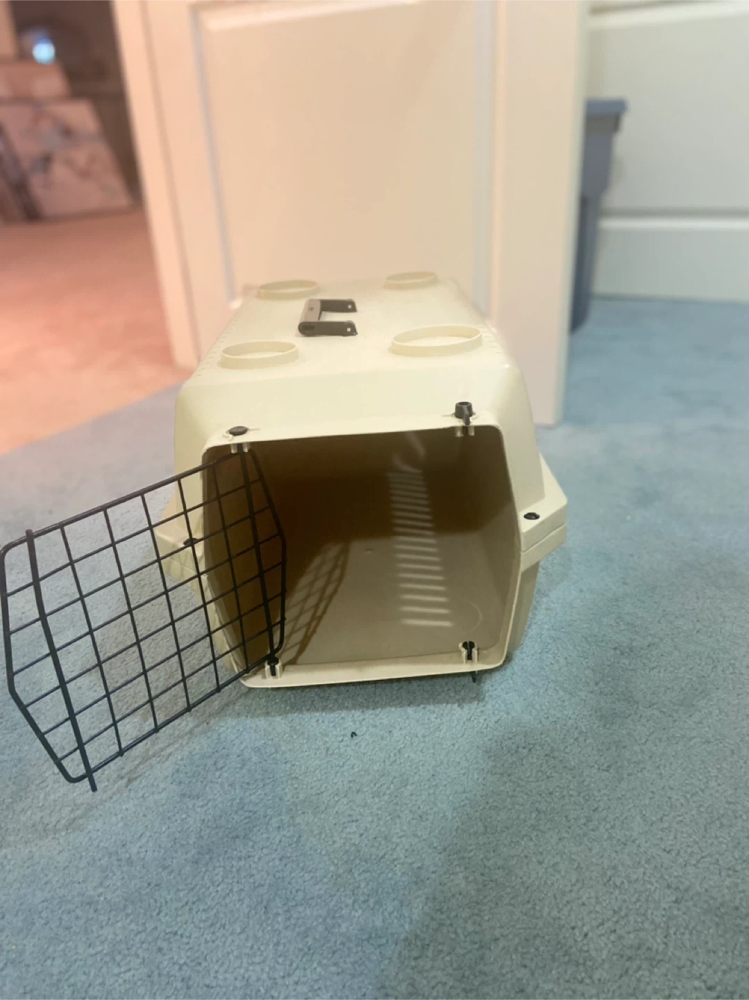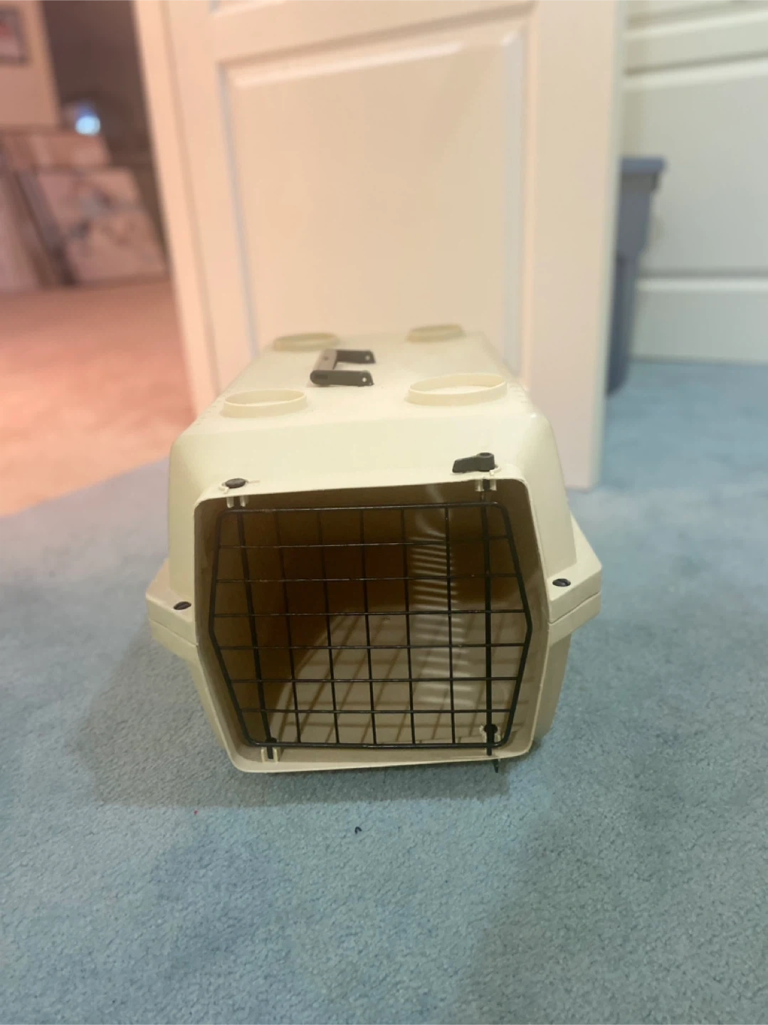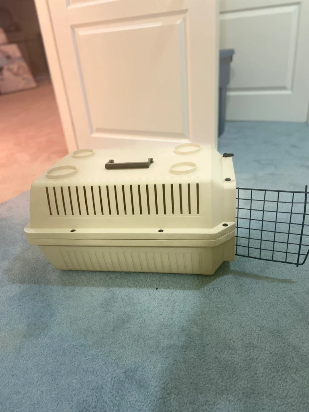 10Selling a used pet carrier, perfect for small dogs or cats. It's in good condition and ready for your furry friend's next adventure