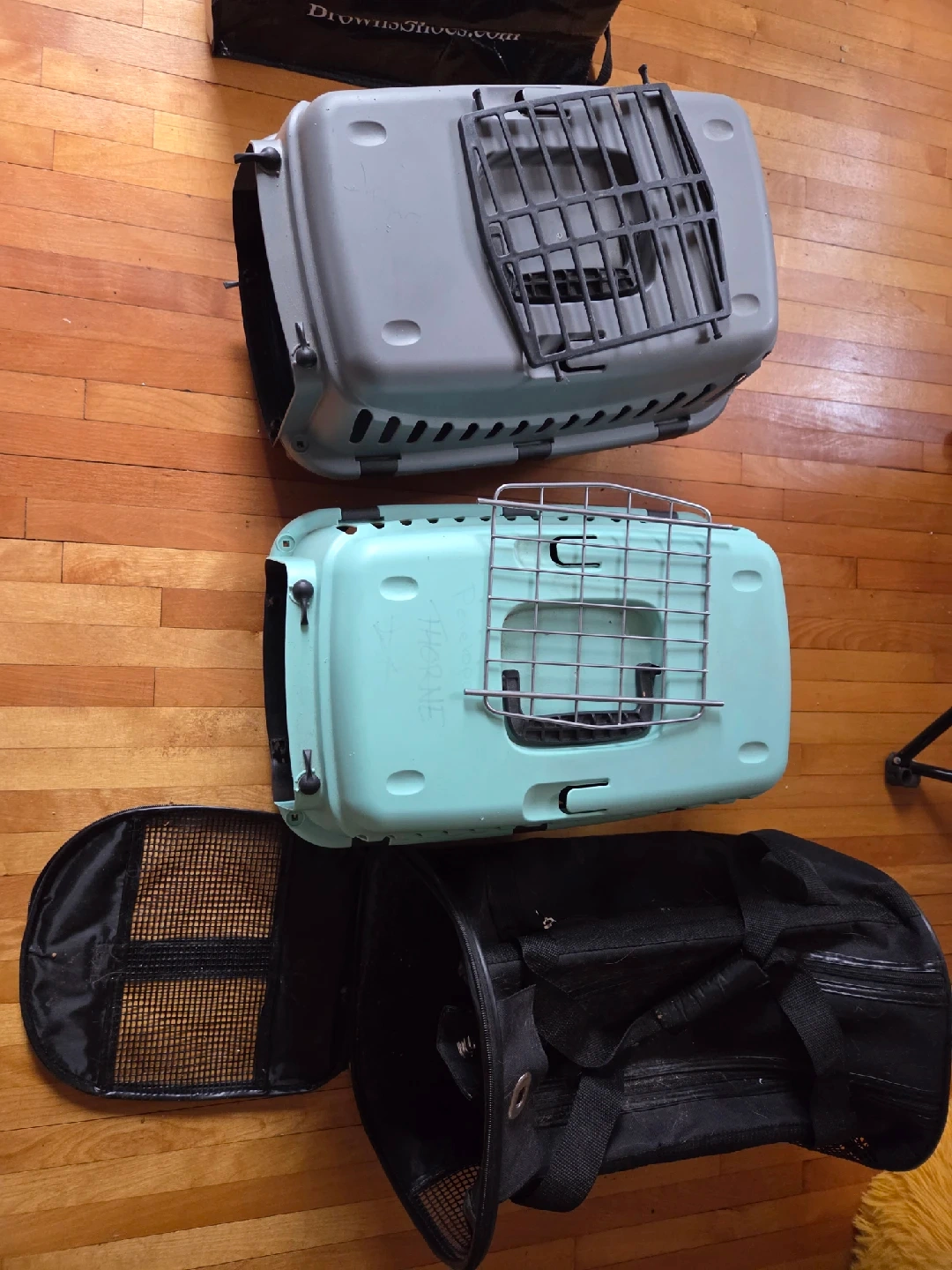 83Selling a few pet carriers! There's a black fabric one and two plastic ones in different colours. They're all in good condition and ready for a new furry friend!