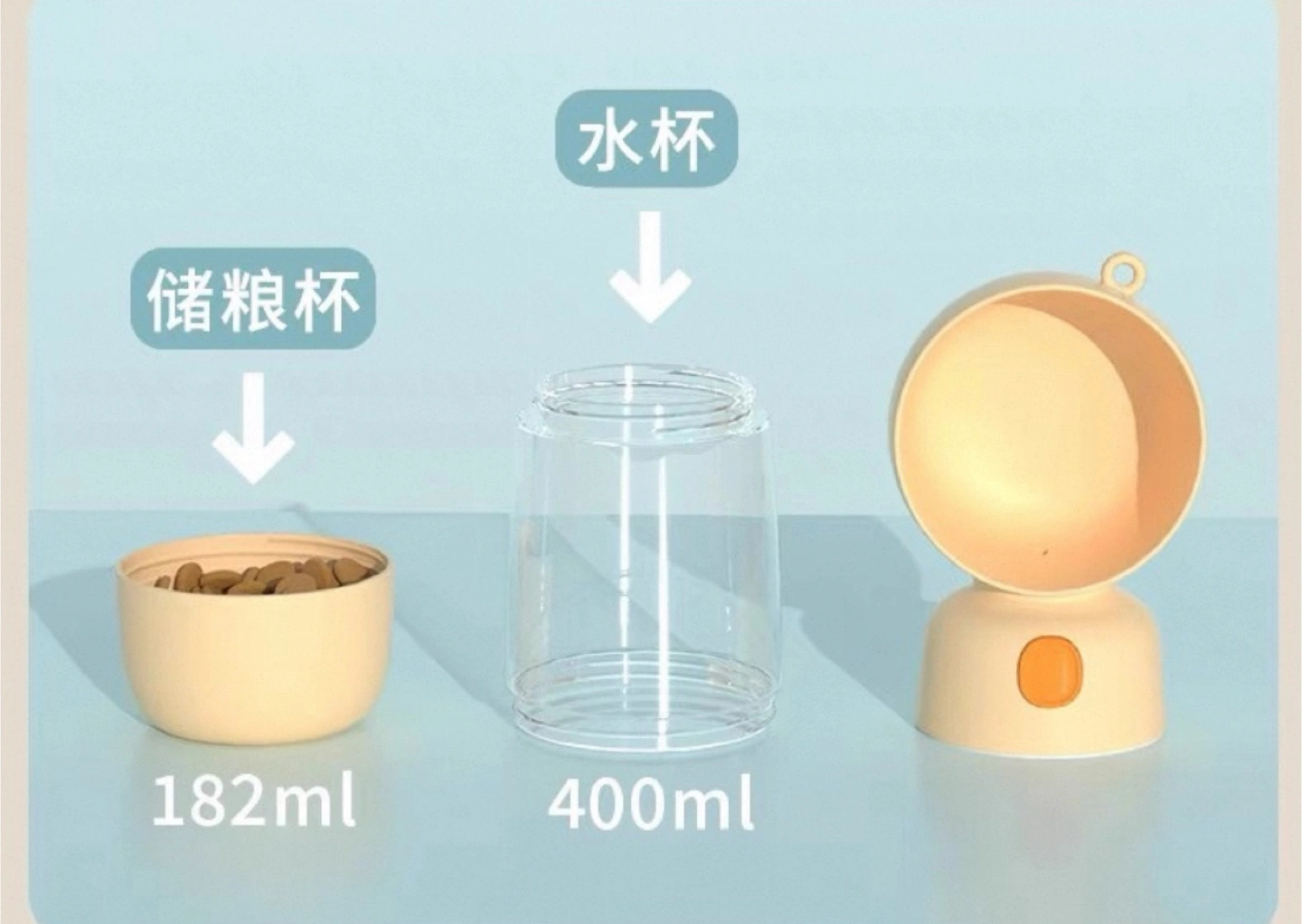 73I'm selling a pet food and water dispenser. It's perfect for keeping your furry friend fed and hydrated! The dispenser has separate containers for food and water, making it easy to portion out meals and keep water fresh. The compact design is great for small spaces, and it's easy to clean too