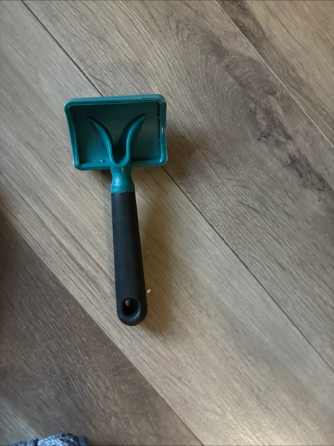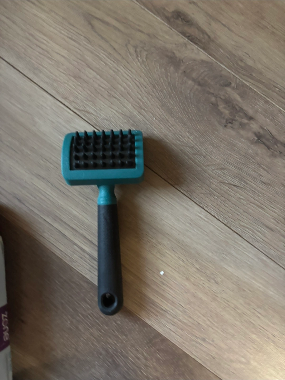 Here's a handy pet grooming brush! It's perfect for keeping your furry friend looking their best. It features a comfortable handle and effective bristles for removing loose hair and keeping their coat healthy and shiny