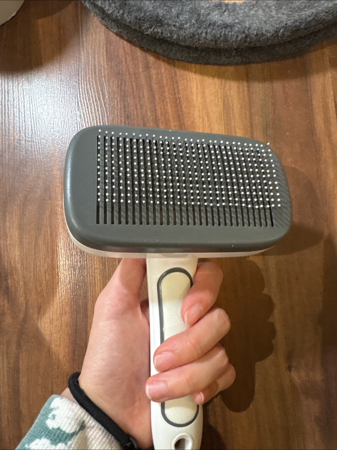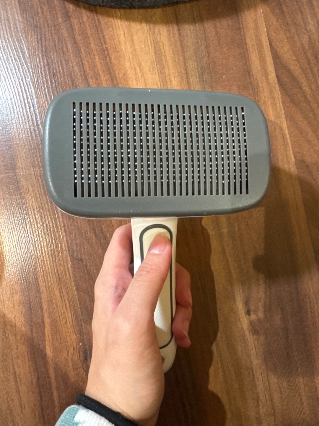 412Self cleaning pet brush. Great for removing loose fur. Ergonomic handle. Grey and white colours. Great for cats and dogs