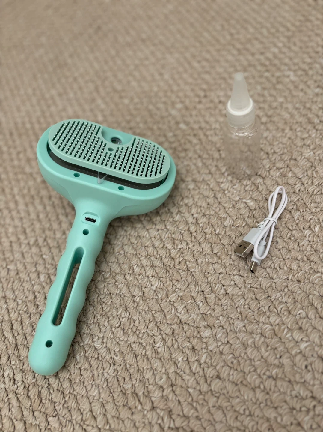 17I'm selling a pet grooming brush in great condition! This is a self-cleaning slicker brush, perfect for keeping your furry friend looking their best. It comes with a USB charging cable and a small bottle - Message for more details (BRAND NEW)