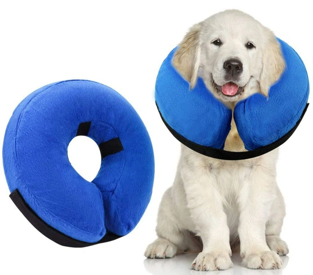 Keep your furry friend comfy and safe with this inflatable pet collar! It's a size S. Easy to inflate and use, this collar will help prevent your pet from aggravating injuries or wounds