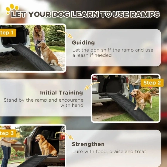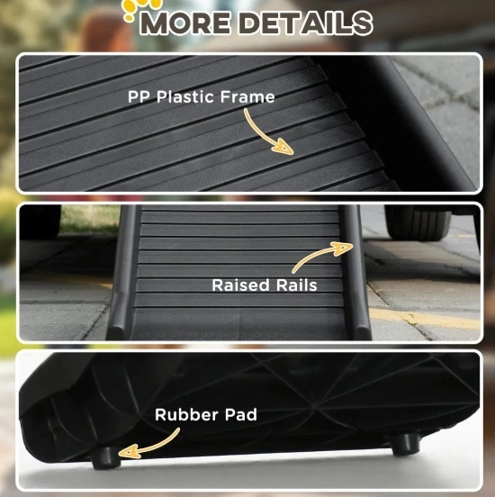 10Pet Ramp suitable for car trunks below 29.5" (75 cm.) height from the floor folds in half for easy storage assembly required colour: black material: pp overall dimensions: 61" l x 15.4" w x 5.5" h (155 l x 39 w x 14 h cm.) foldable dimensions: 31.1" l x 15.4" w x 7.9" h (79 l x 39 w x 20 h cm.) weight capacity: 165 lbs. (75 kg.) item label: d06-153v00bk