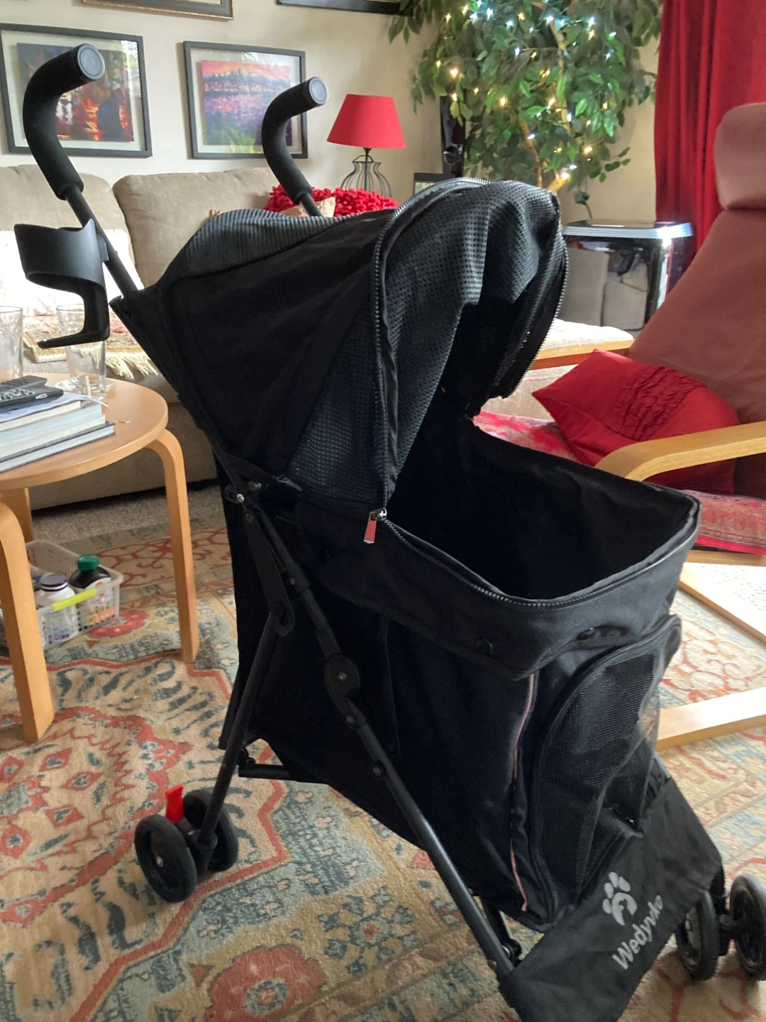 29BRAN NEW pet stroller in excellent condition. Great for small to small-medium size dogs and cats. Remains in original packaging and box. Perfect for walks in the Neighbourhood, trips to the Park, and Veterinarian. It's lightweight and folds up for storage; making it easy to maneuver. If you’re interested, please call 604-404-5328, pick up and pay $54. Firm. Thank you for your time.