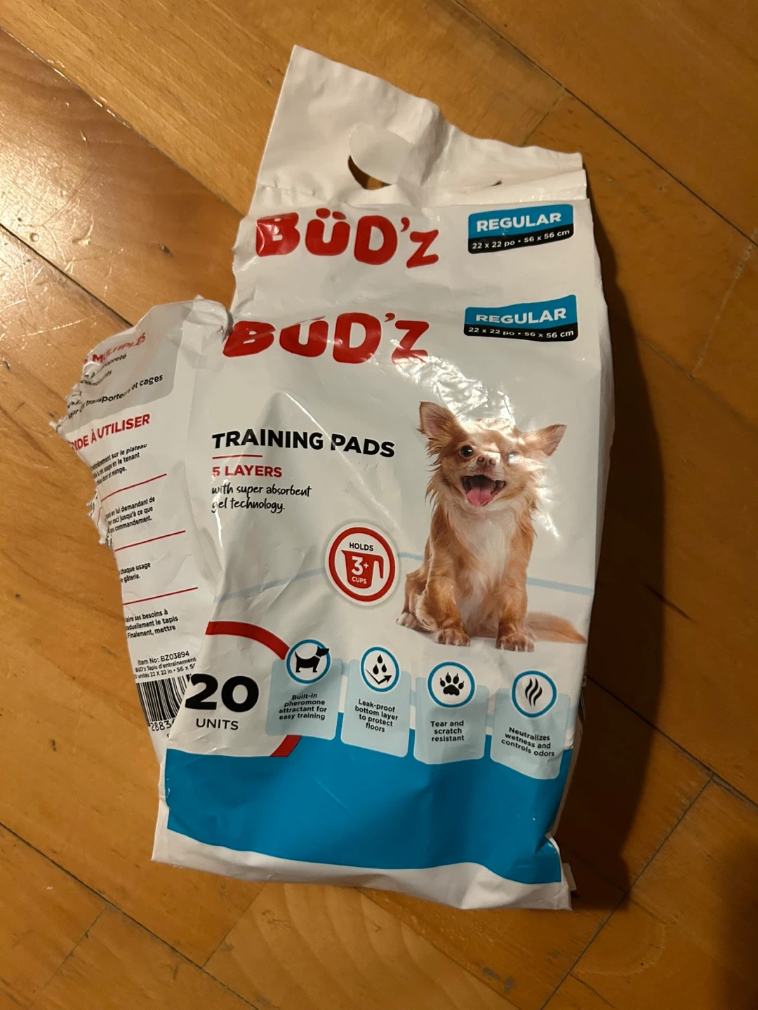 176Selling a pack of BÜD'Z Regular Training Pads! These pads are 22 x 22 inches (56 x 56 cm) and there are 9 pads left in the pack. They feature 5 layers with super absorbent gel technology and hold 3+ cups. My friend fostered a cat and no longer needs this, so I’m helping her give it away.
