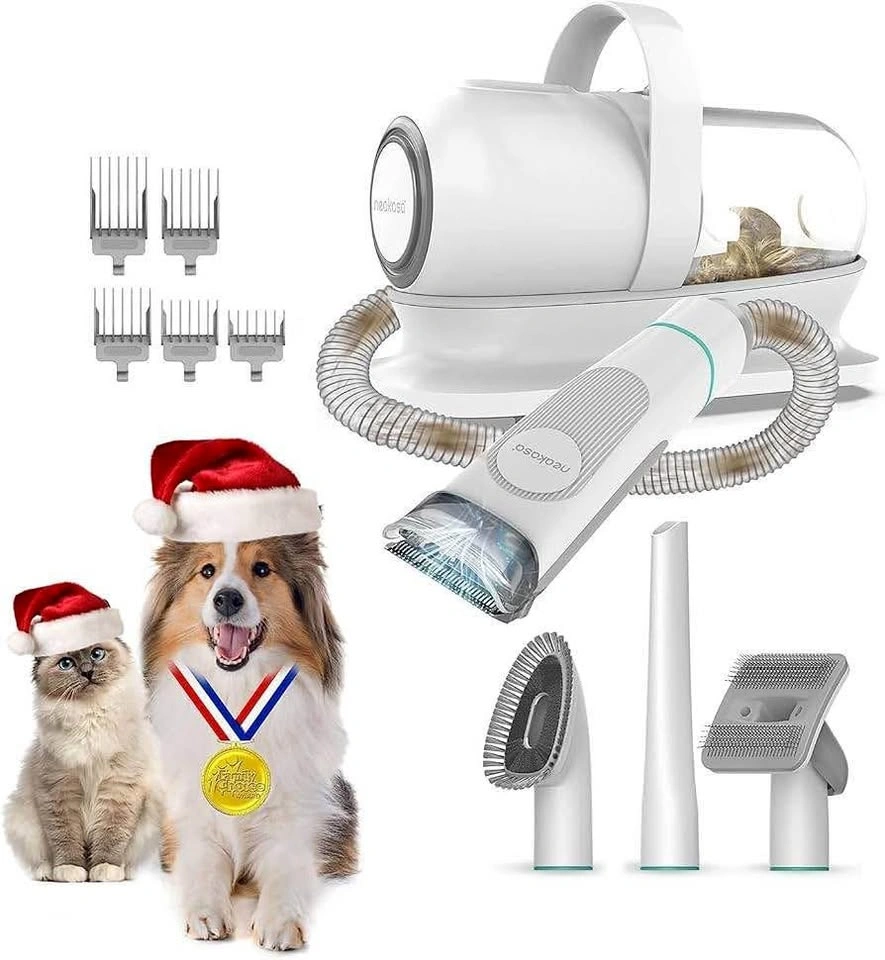 75Keep your pet looking great with the all-in-one Neabot P1 Pro Grooming Kit! This versatile set features 5 tools including grooming brushes, a powerful electric clipper, nozzle head, and cleaning brush—all with vacuum function that collects 99% of hair, keeping your home tidy. Adjustable guards (6mm-24mm), low noise design, and easy-to-use features make grooming stress-free for your furry friend. Comes with 1-year service, 45-day return, and 24/7 support. Perfect gift for pet lovers! 🐶🐱✨