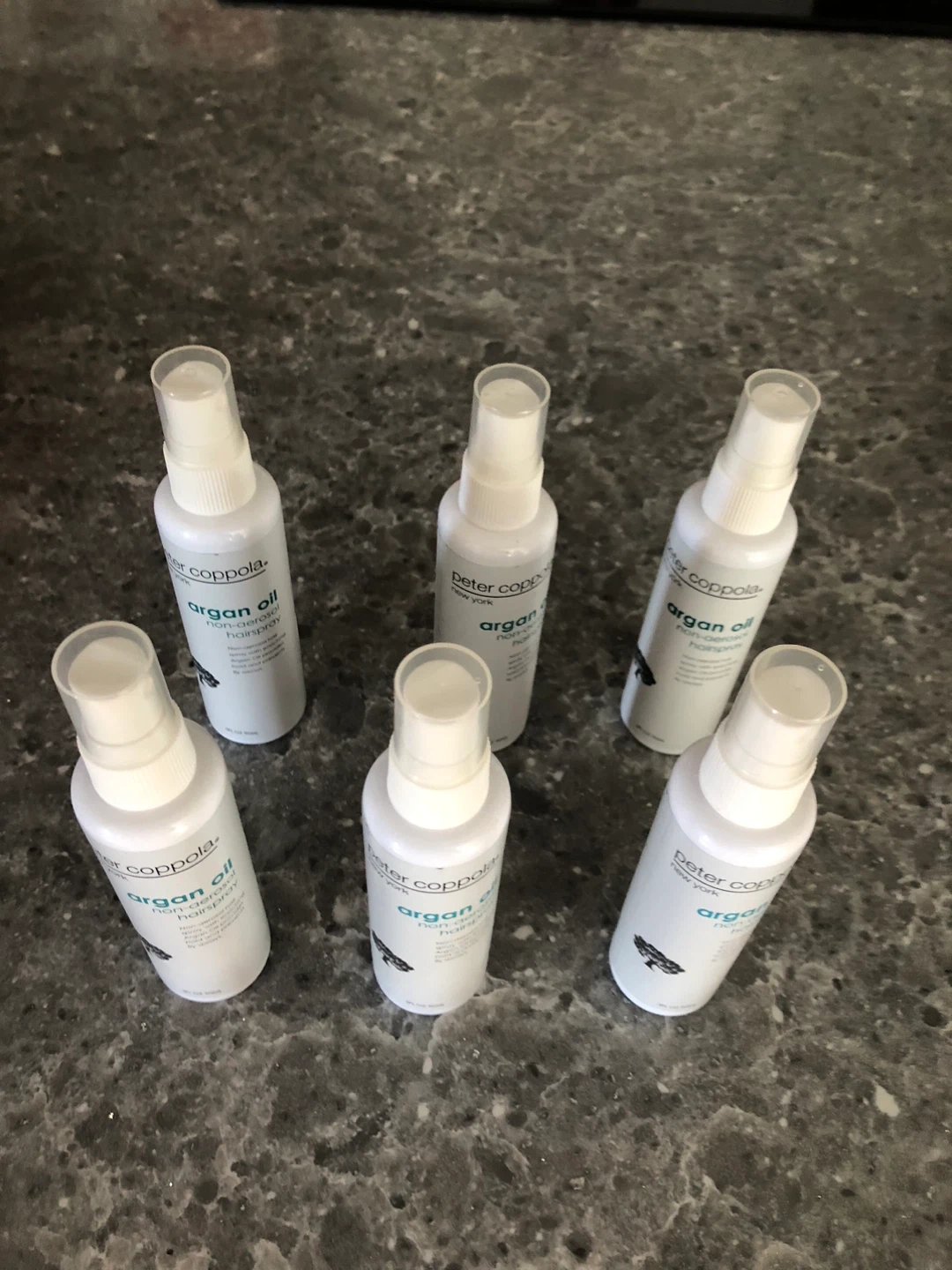 I'm selling Peter Coppola Argan Oil non-aerosol hairspray. Each bottle contains 90ml / 3 fl oz. Perfect travel size for purse. This hairspray is designed to provide hold and prevent flyaways, leaving your hair looking its best. Perfect for achieving a sleek and polished look! Take all 6 for $10 or $3 each