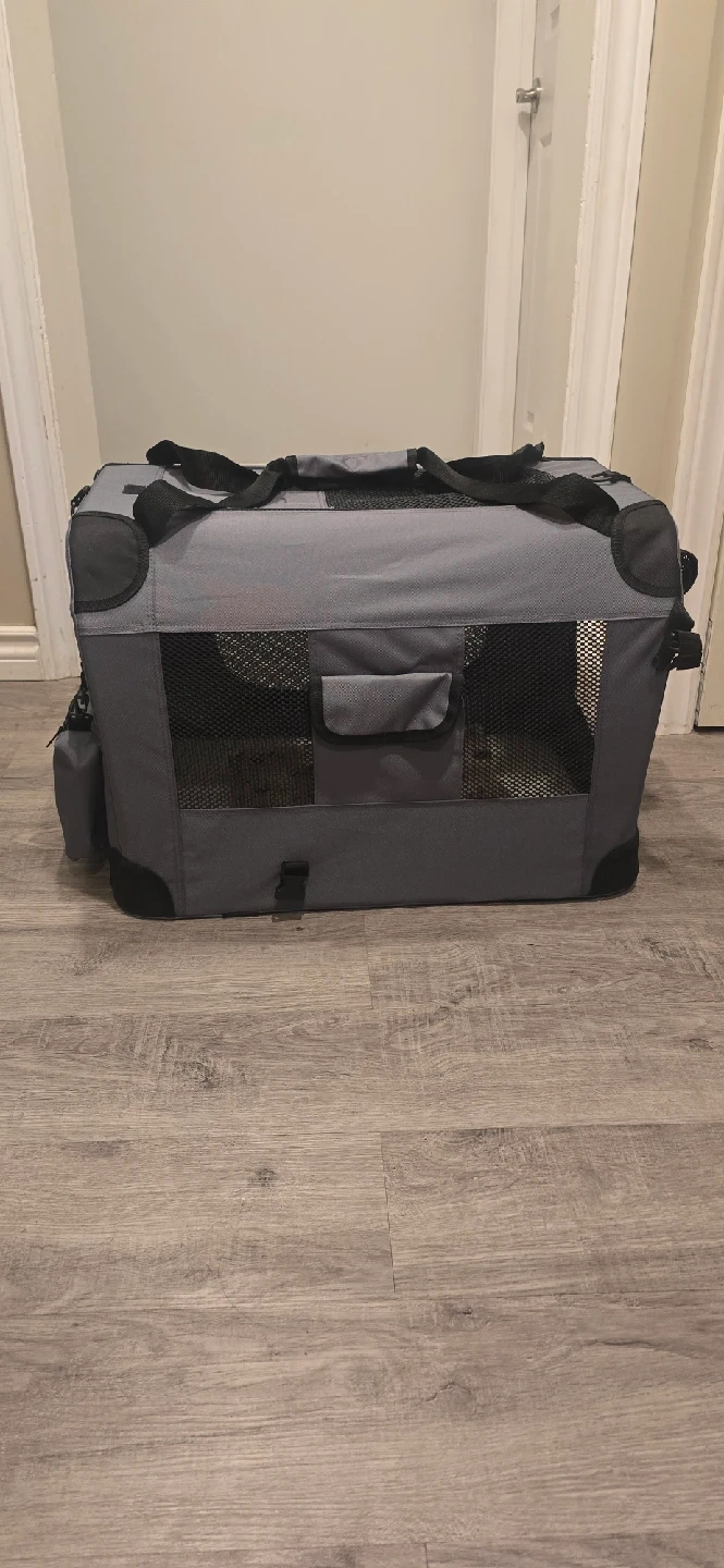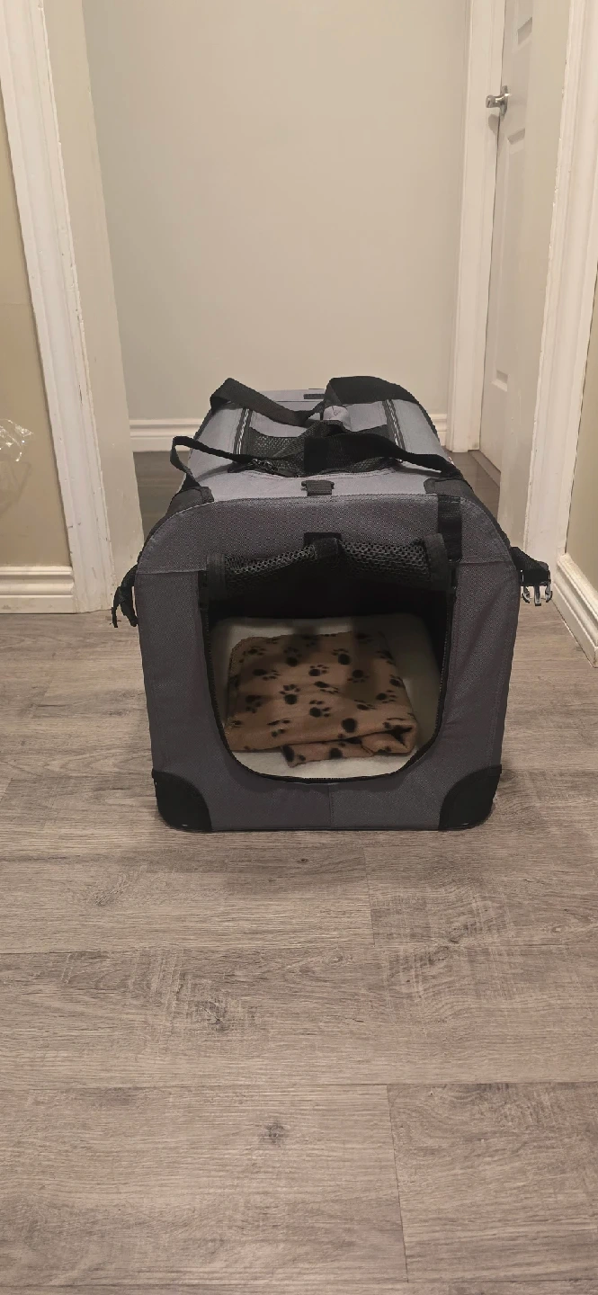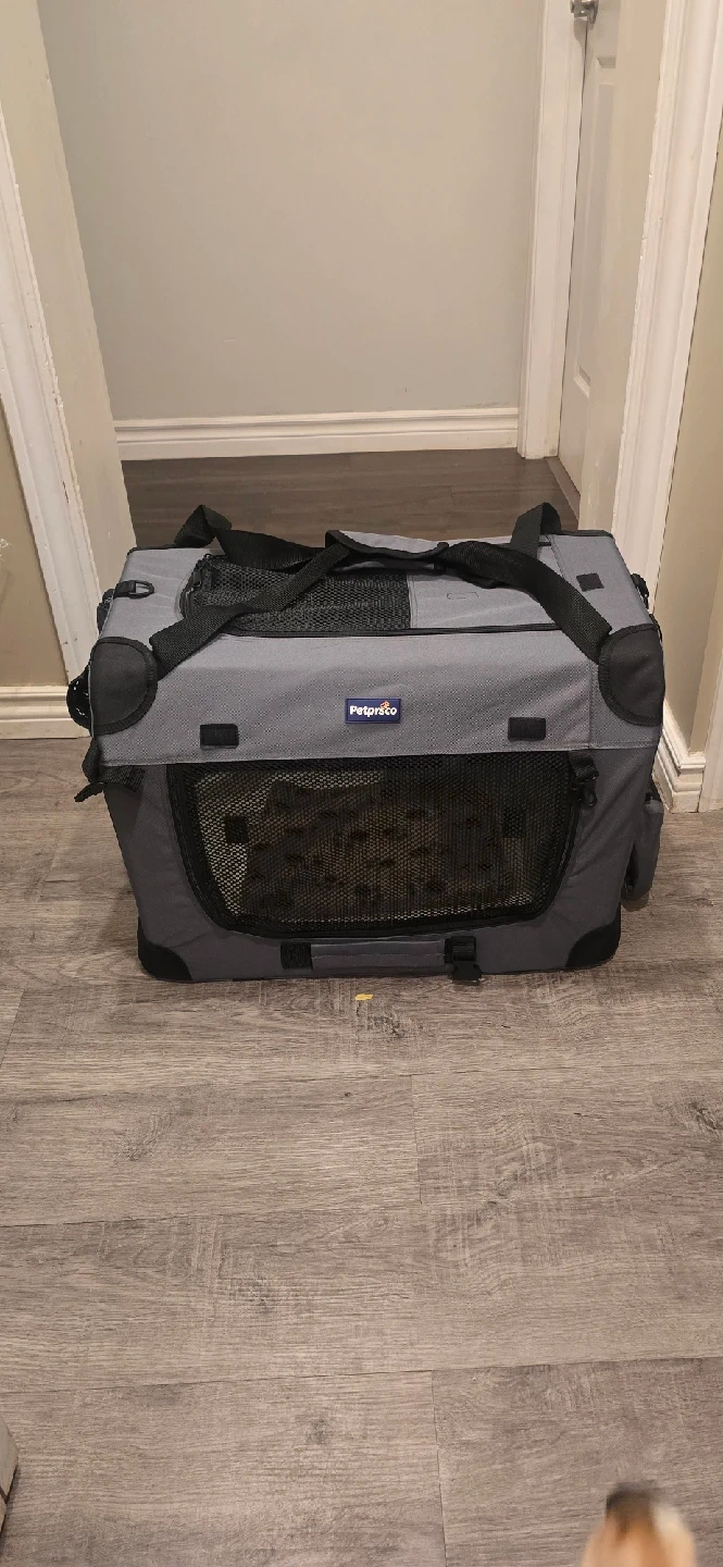 53Selling a Petprosco pet carrier, brand new, never used. It's a great way to transport your furry friend safely and comfortably. It features mesh windows for ventilation and visibility, and sturdy handles for easy carrying. Perfect for vet visits or travel! Comfortably holds pets up to 30 lbs. Comes with base pad, blanket and collapsible water/food bowl. Folds flat for easy storage. See Amazon link of actual product https://a.co/d/2t0BJEQ
