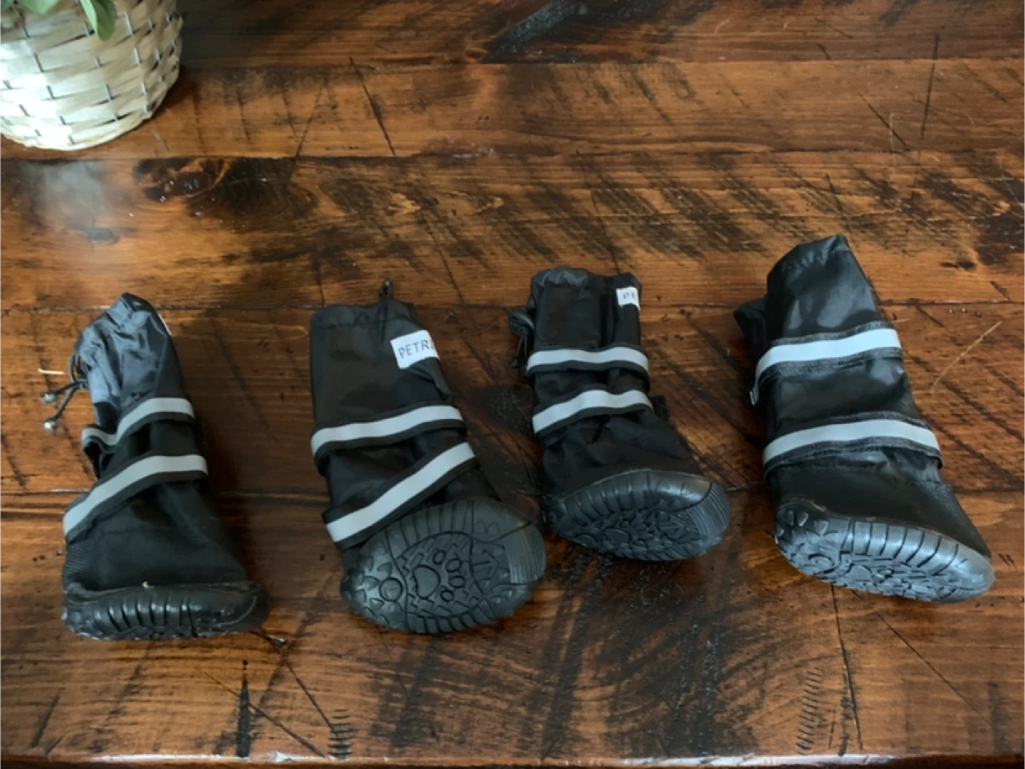 10Keep your furry friend's paws protected with these Petrich dog boots! They're black and feature reflective straps for added visibility. Perfect for walks in any weather!