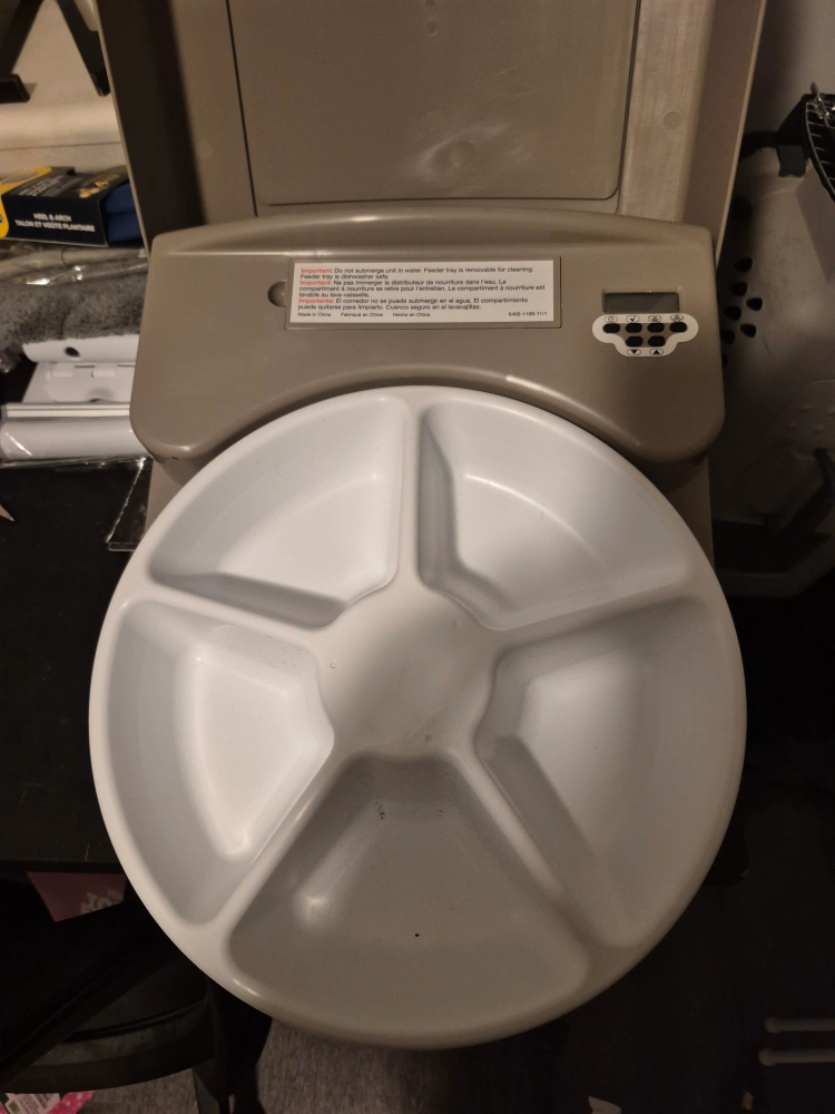 Selling a PetSafe automatic pet feeder. It's in great shape and ready to help keep your pet on a consistent feeding schedule. The feeder has a removable tray for easy cleaning, making maintenance a breeze. Perfect for busy pet parents!