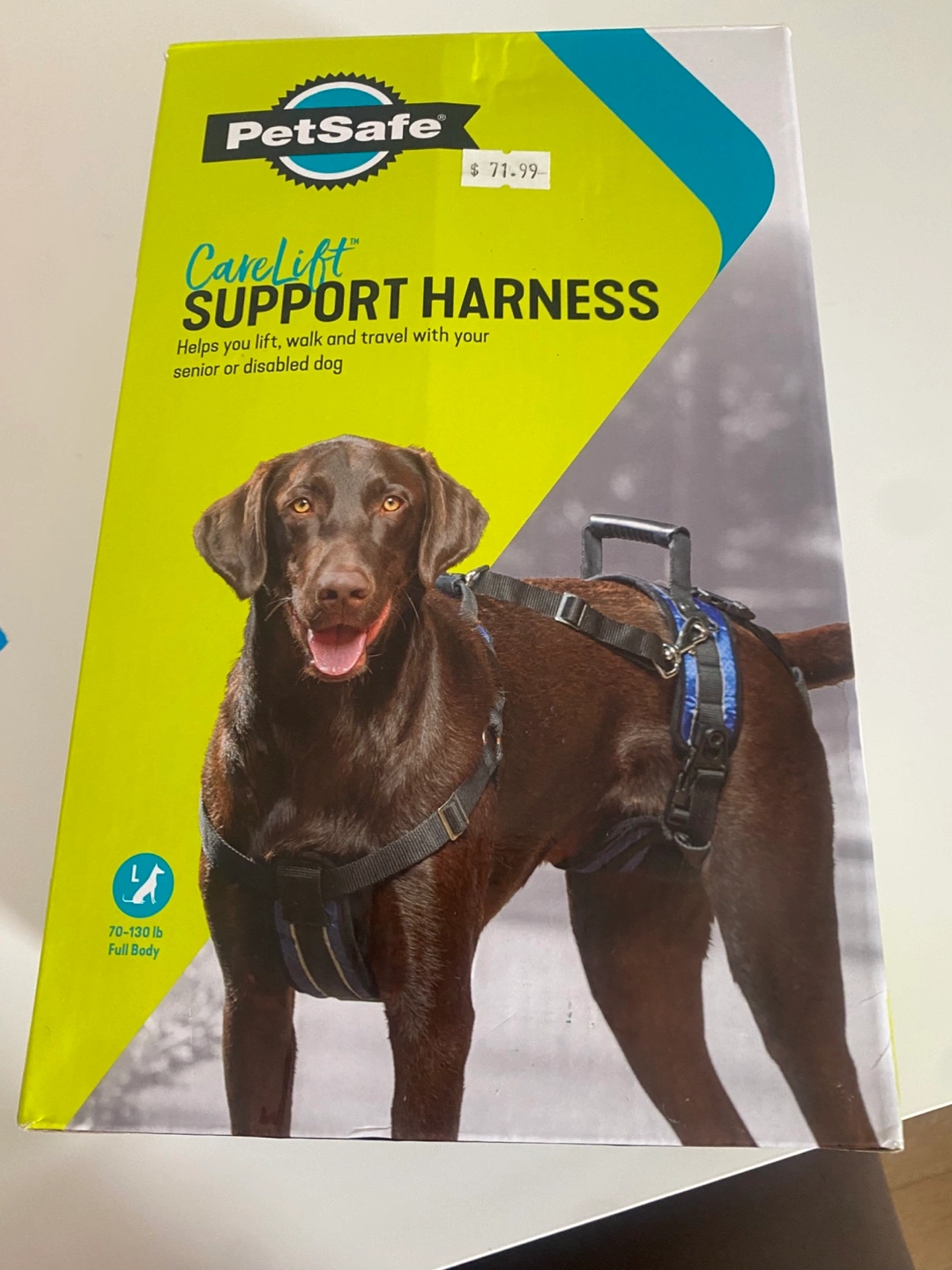 Selling a PetSafe CareLift Support Harness. It helps you lift, walk and travel with your senior or disabled dog. For full body support for dogs weighing 70-130 lb. Originally bought for $71.99. Comes with the box