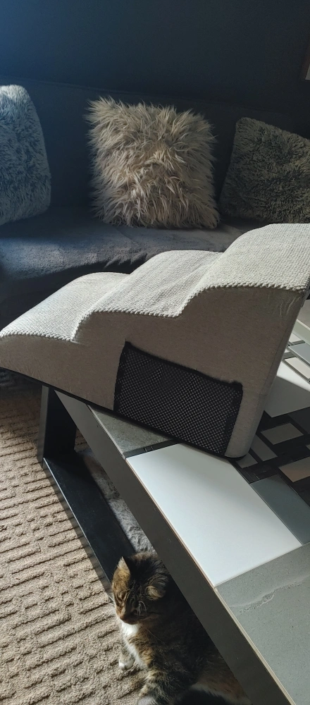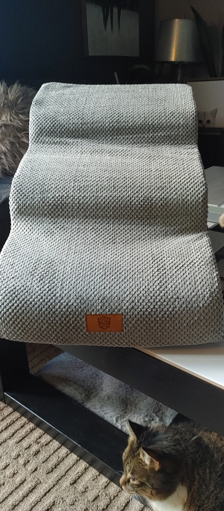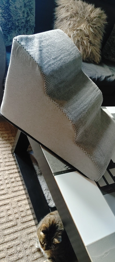 These PetSafe CozyUp pet stairs are perfect for helping your furry friend reach high places! The stairs are in great condition and feature a stylish grey fabric. They have three steps to make it easy for smaller dogs and cats to climb up on the couch or bed. They are lightweight and portable, so you can move them from room to room. Removable cover for washing.