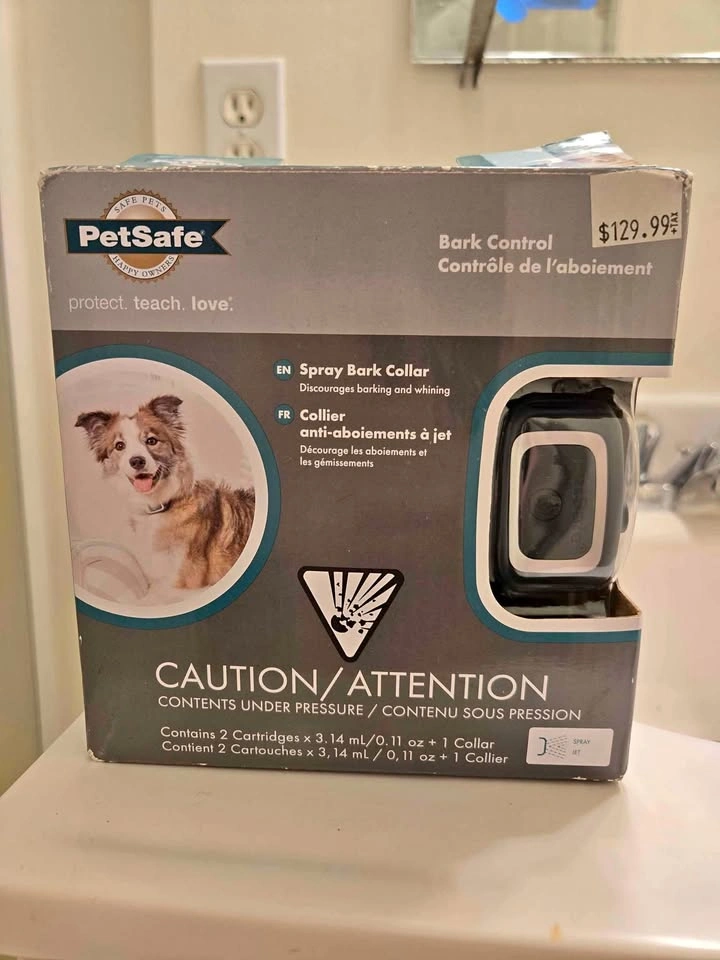 60Includes: Water Resistant Spray Bark Collar, USB Charging Cable, 1 Citronella Spray Cartridge, 1 Unscented Spray Cartridge, Quick Start Guide The collar is designed for dogs 8 lb. and up and is adjustable for necks up to 27 in. Adjustable Bark Control Collar with Quick-Snap Buckle Used only once. Located in the Marpole area of Vancouver (near W 70th Avenue and Hudson Street).