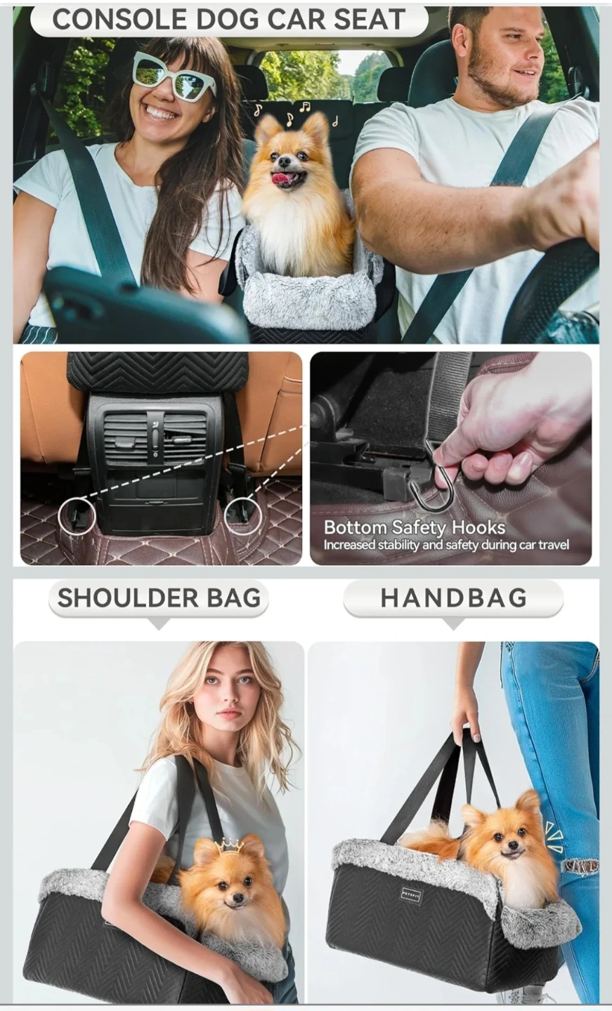 112Keep your furry friend safe and comfy on car rides with this Brand new... PETSFIT dog car seat! It's designed to fit on your console, keeping your small dog (under 9 lbs) close. The soft, plush lining will make them feel like they're riding in style. External Size: 17.32" x 9.65" x 8.65" Internal Size: 15.35" x 7.48" Recommended for breeds like Chihuahuas, Pomeranians, and Yorkshire Terriers