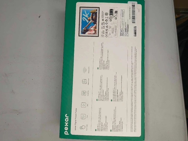 68Pexar 11" Wi-Fi Digital Photo Frame – 2K Touchscreen, Anti-Glare, 32GB Storage. New (Open Box). Box opened but item unused — tested! 【 Perfect Gift for Loved Ones 】 Send photos instantly to family and friends and turn any day into a special occasion. Ideal for Christmas, Mother’s Day, birthdays, or anniversaries. 【 Stunning 2K Anti-Glare Touchscreen 】 Enjoy vibrant visuals with 2000 x 1200 resolution on an 11-inch display. Anti-glare technology ensures clear viewing from any angle, in both portrait and landscape modes. 【 Easy Setup & User-Friendly 】 Plug in, connect to Wi-Fi, and share photos or videos instantly. The frame works seamlessly with both Apple (iOS 14+) and Android (6.0+) devices via the dedicated app. 【 Share Photos & Videos Instantly 】 Invite family and friends to share images and videos remotely. React to photos, display slideshows, and use smart features like auto rotation, weather display, clock, and sleep mode. 【 Large 32GB Built-In Storage 】 Store up to 40,000 photos (approx. 600KB each) and play directly from SD cards or USB-A flash drives for ultimate convenience.