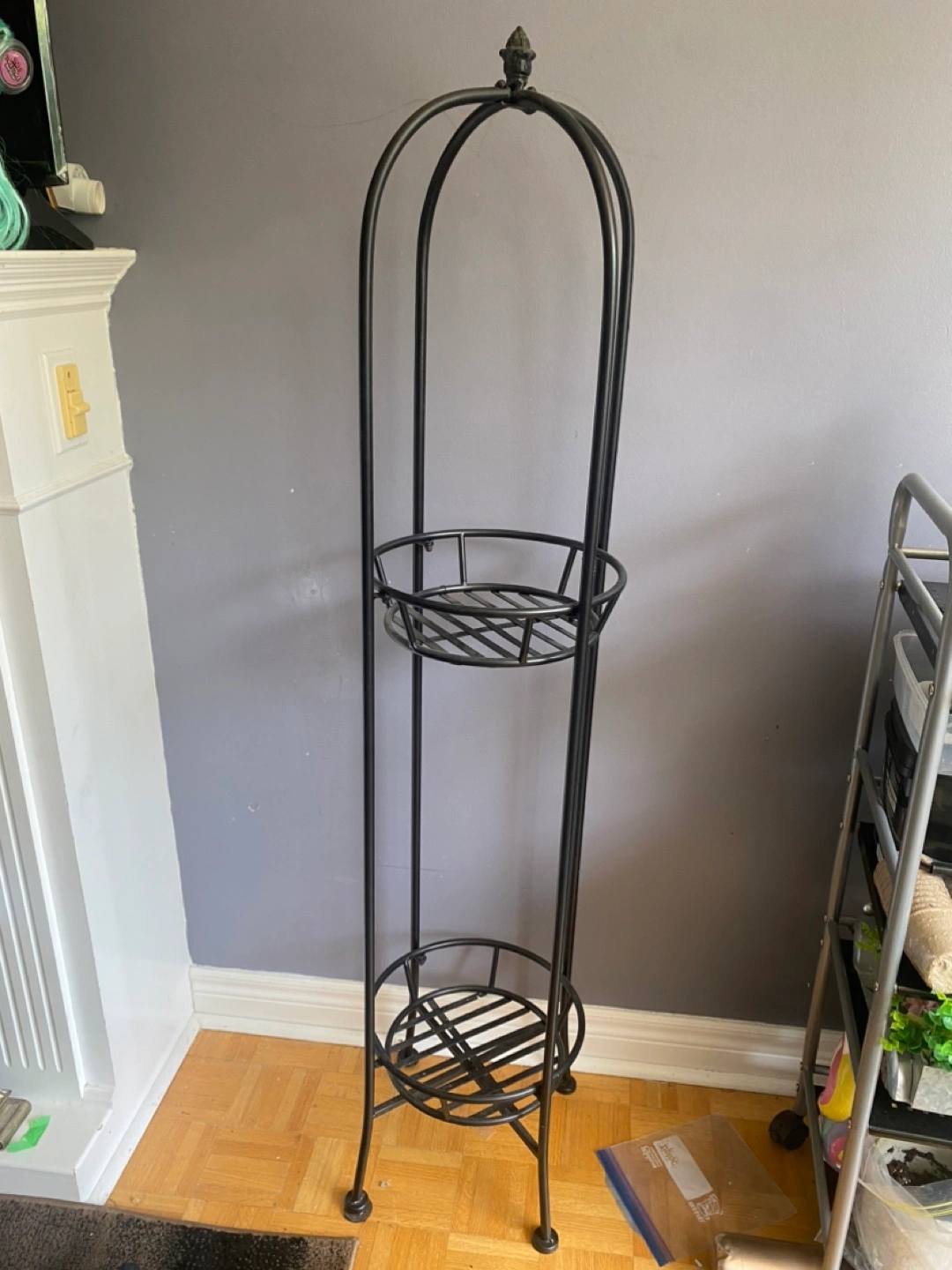 Here's a black metal plant stand, perfect for adding some height and style to your plants! It stands about 54 inches tall, offering plenty of space for your favourite greenery
