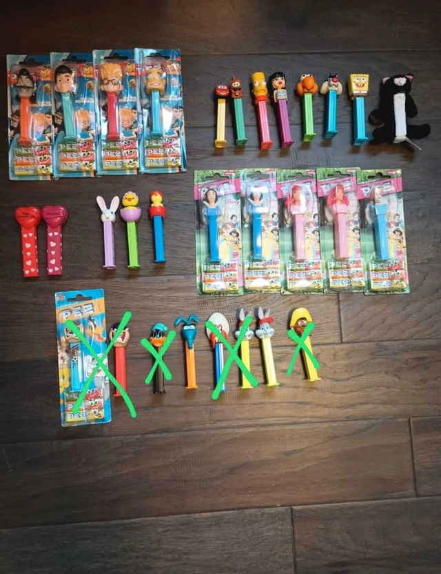 15Large collection of Pez for sale. If you're looking for individuals - please message me and I'll give you the price. I do NOT recommend eating the candy - it is definitely expired. Take the remainder of the collection for listed price. Otherwise, individual prices based of Pez Collectors Website. Smoke free home. Pick up near Banwell and the Expressway. Serious inquiries only, thank you. Valentine's, Easter, cat, Looney tunes, Disney, princess, Simpsons, Pixar, Nintendo, Nemo, Meet the Robinsons, Taz, Cars, Spongebob, and more!