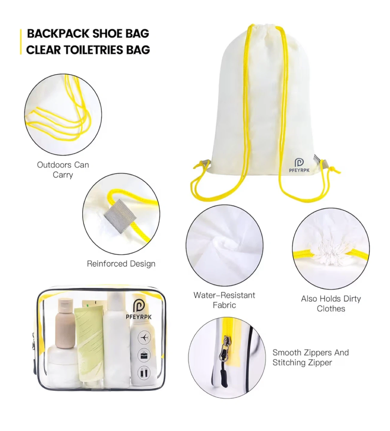 - 1 clear toiletries bag (7.9*5.9*5.5 inch)
