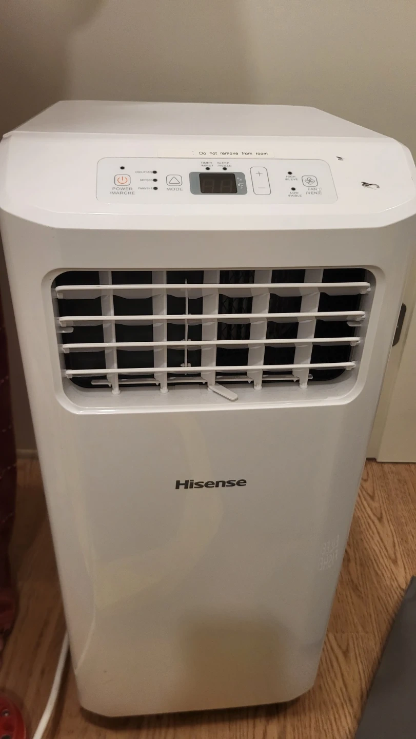 This Hisense portable air conditioner offers 6,000 BTU cooling power and a 3-in-1 functionality. It's white and comes with a remote control for easy operation. Perfect for keeping a room cool and comfortable!