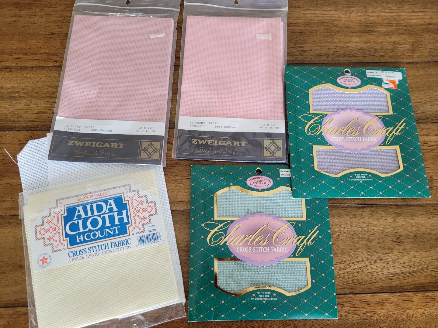 Package includes Zweigart and Charles Craft 14 count Aida cross stitch fabric. All pieces are 100% cotton and measure 12" x 18". Great for various embroidery projects! Great for cross-stitch and embroidery stitching.