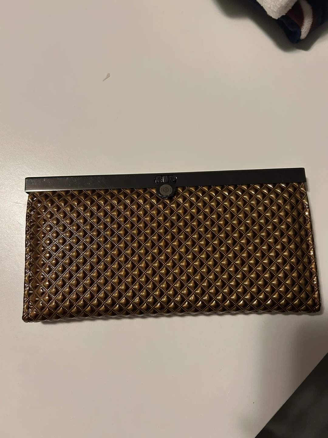 Buy & SellQuilted Clutch WalletQuilted Clutch Wallet$7Stylish bronze quilted clutch wallet. Features multiple compartments and a zippered section for coins. Snap closure.ConditionLike newWHERE TO MEETCheck LocationView MapSELLERverifiedAngelicaSakaw18011 reviews0 chats·0 favorites·1 viewsSEND CHAT TO SELLERHi Angelica! I’m interested in your listing.Hi Angelica! I’m interested in your listing.Get the Karrot app to chatSign In to chat