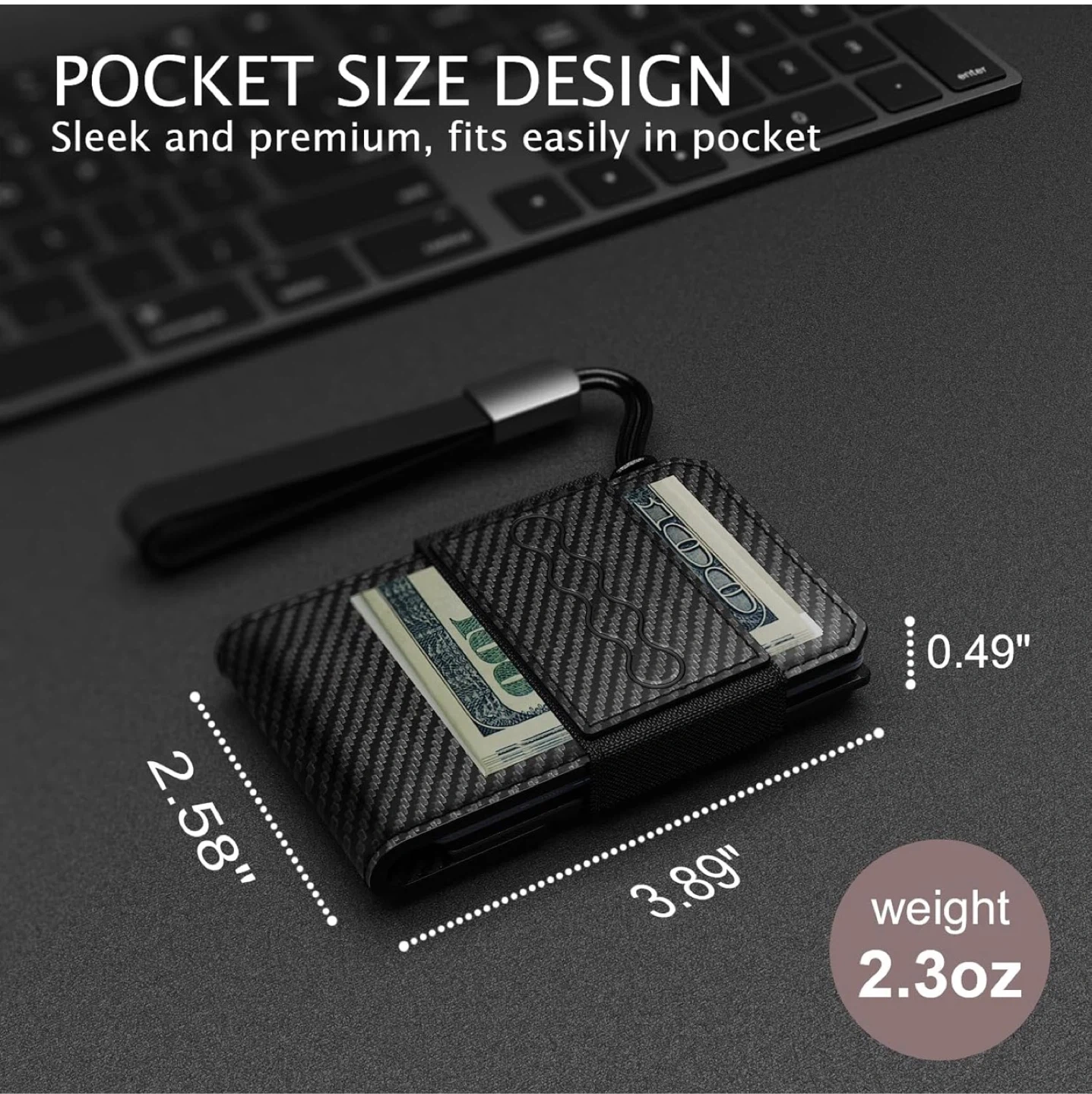 Wallet for Men, RFID Blocking Minimalist Leather Pull-out Cloth Belt Wallet with Money Clip, Men's Wallet for 8-15 Cards & Cash, Pocket Fashion Credit Card Holder (Carbon Fiber)