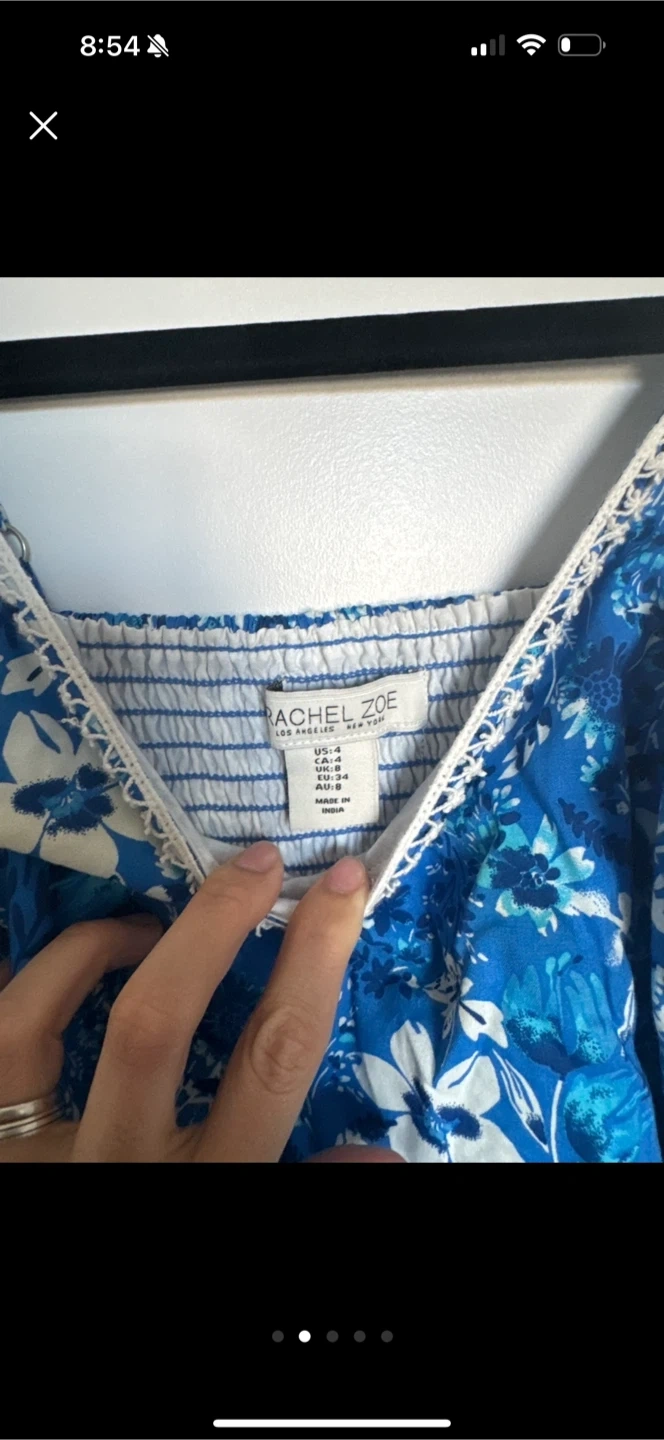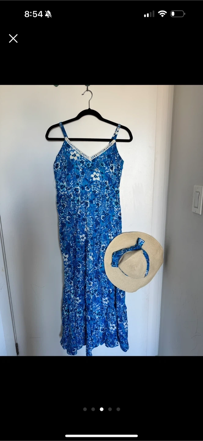 Selling a lovely Rachel Zoe dress and matching hat! The dress is a beautiful blue floral print and is a size 4. The hat complements the dress perfectly, making it a great set for summer outings