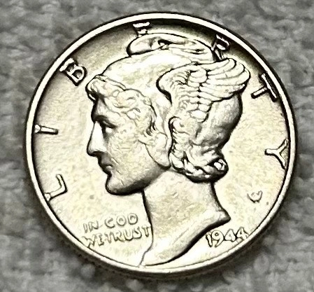 1944 Mercury Silver Dime AU
