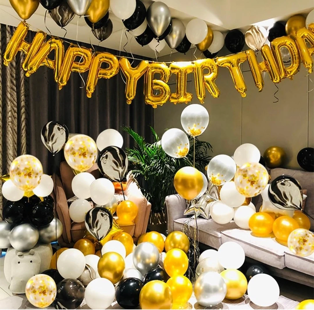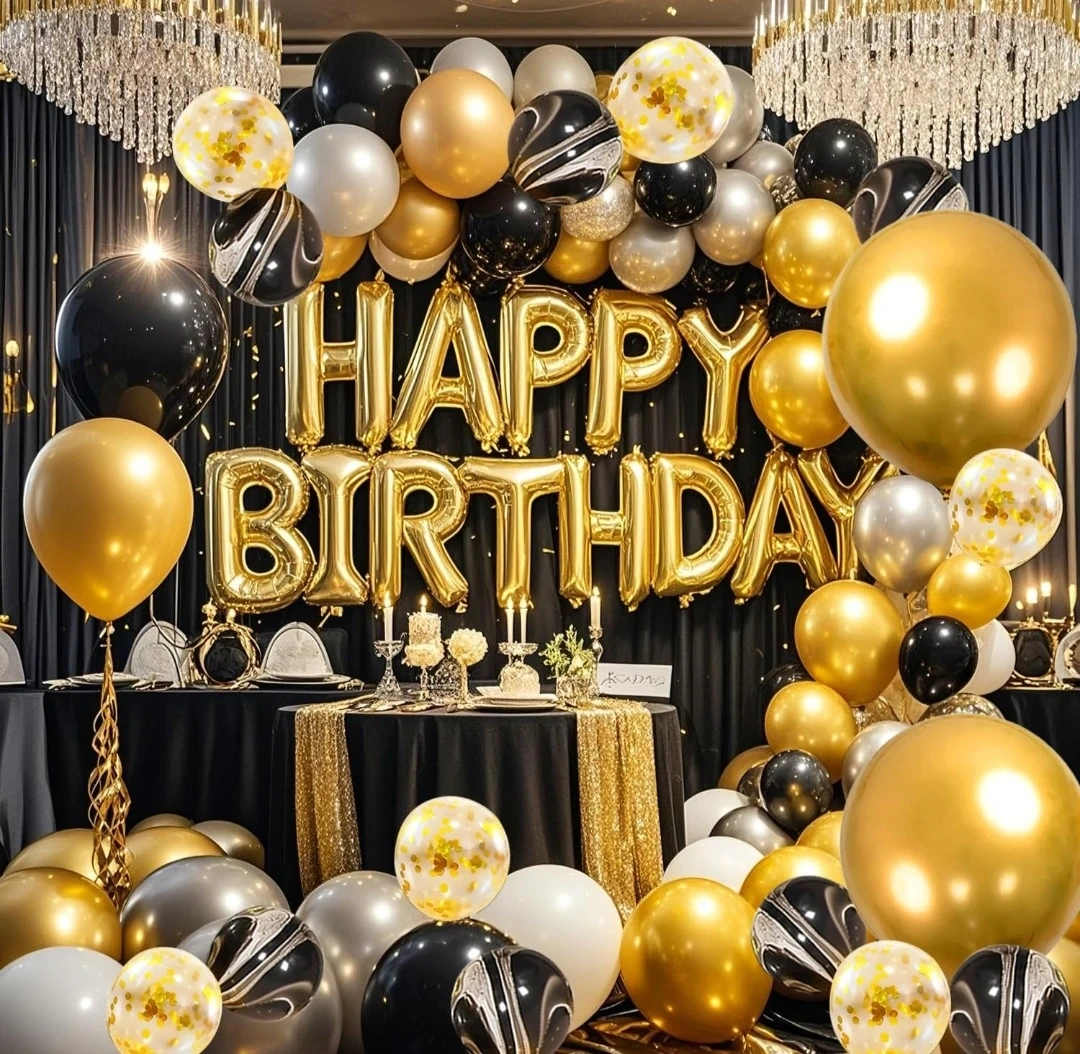 BNIB 118 PCS Black Gold Happy Birthday Party Balloon Set