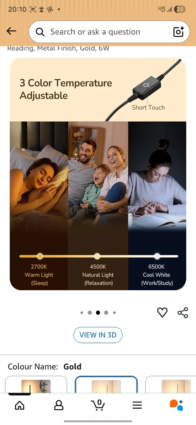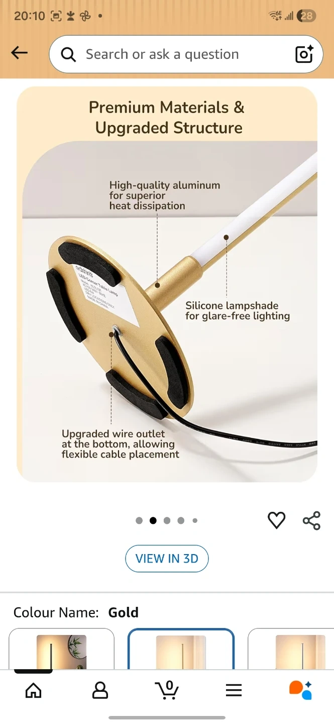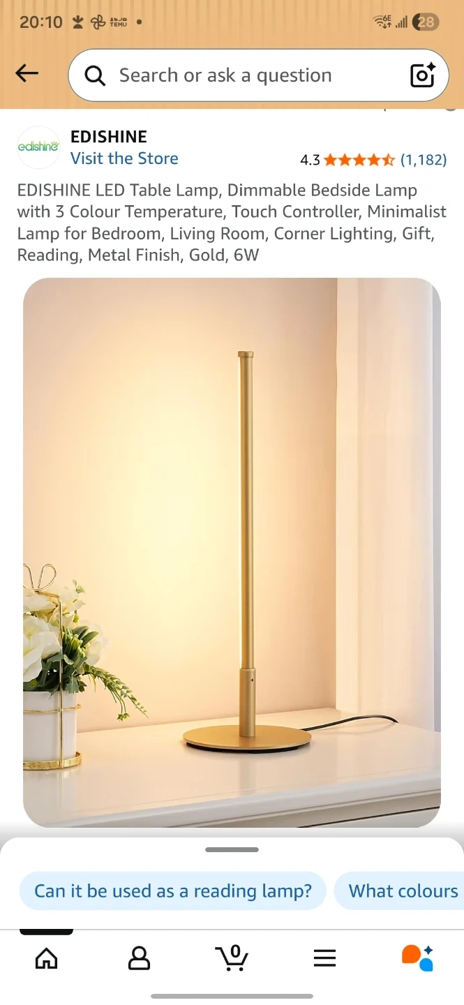 This EDISHINE LED table lamp comes in a gold finish. It's dimmable with 3 colour temperature adjustments. It's made with premium aluminum and has a silicone lampshade for glare-free lighting.