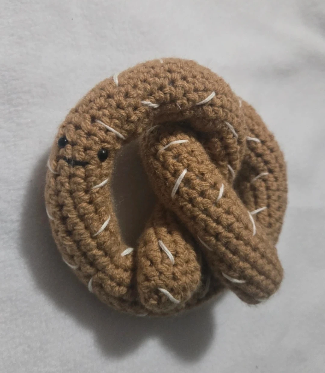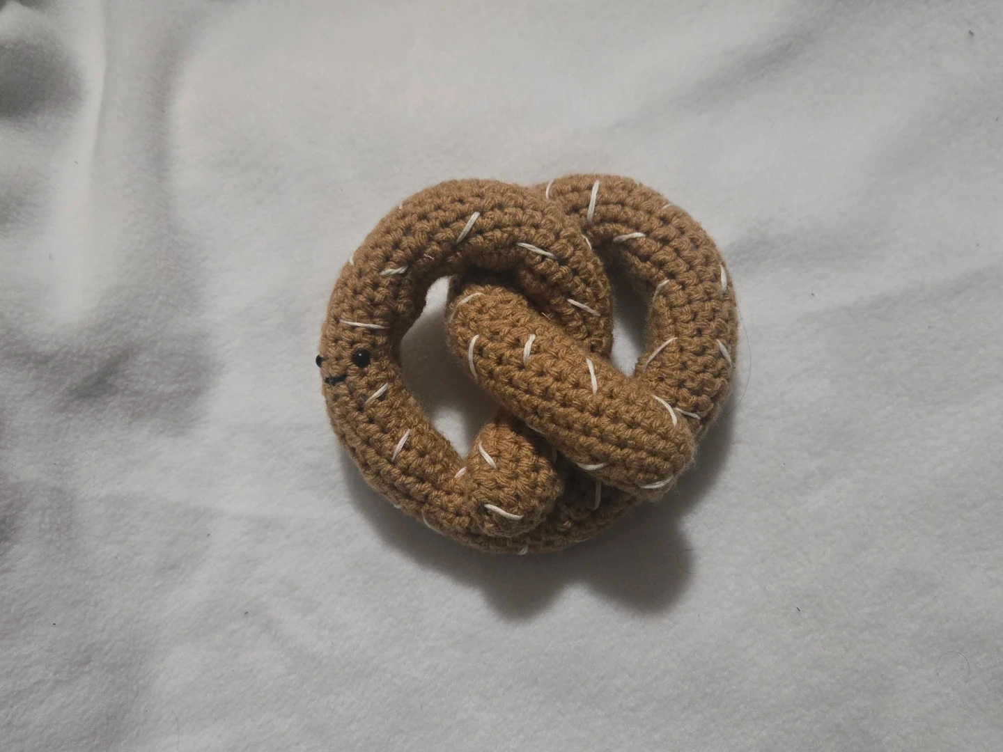 Im selling my handmade brand new crocheted pretzel plush toy. Made with soft yarn and features a cute little embroidered face. 😊🥨