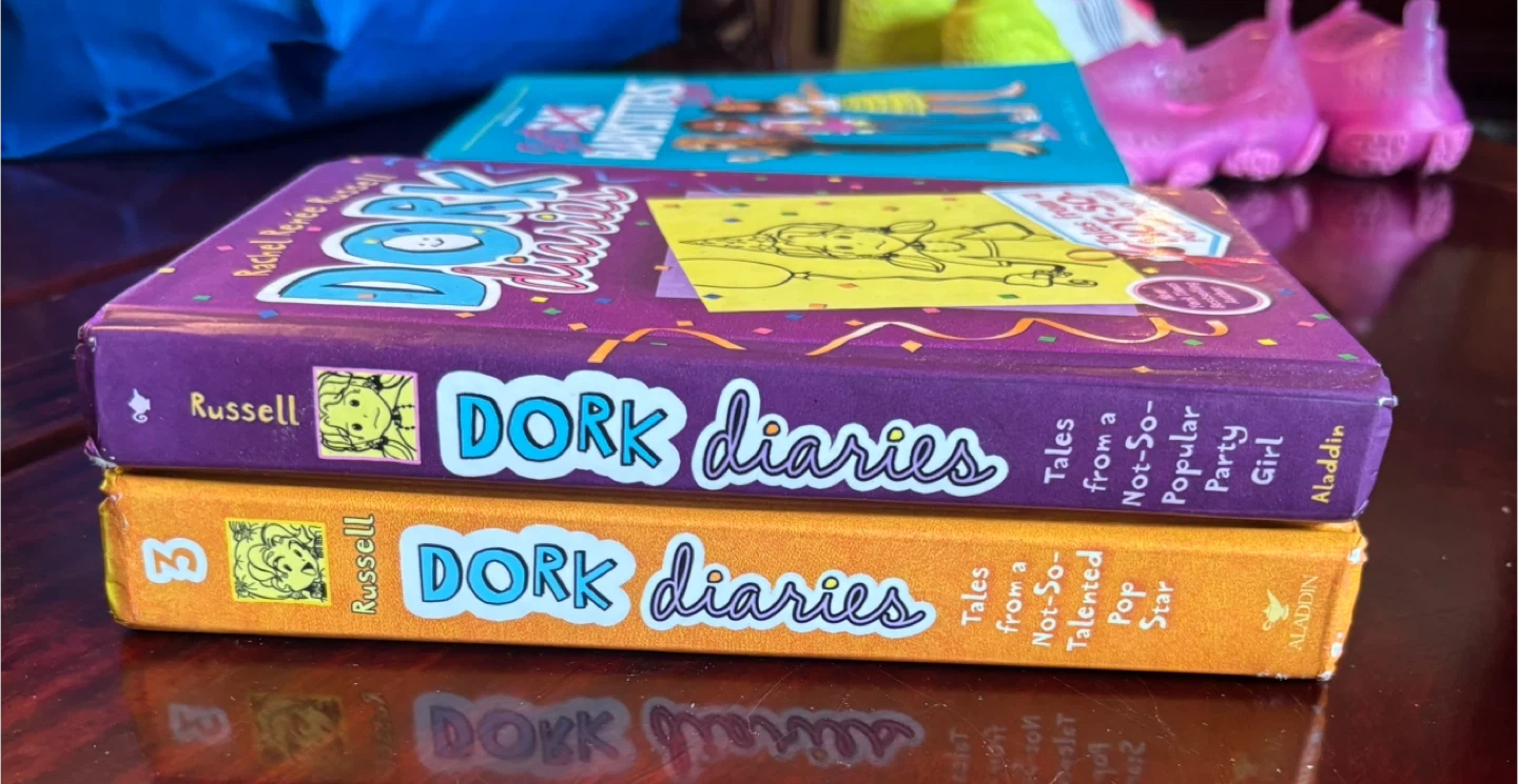 Includes two 'Best Babysitters Ever' books by Caroline Cala and two 'Dork Diaries' books by Rachel Renee Russell. Great for young readers! These are chapter books with engaging stories.