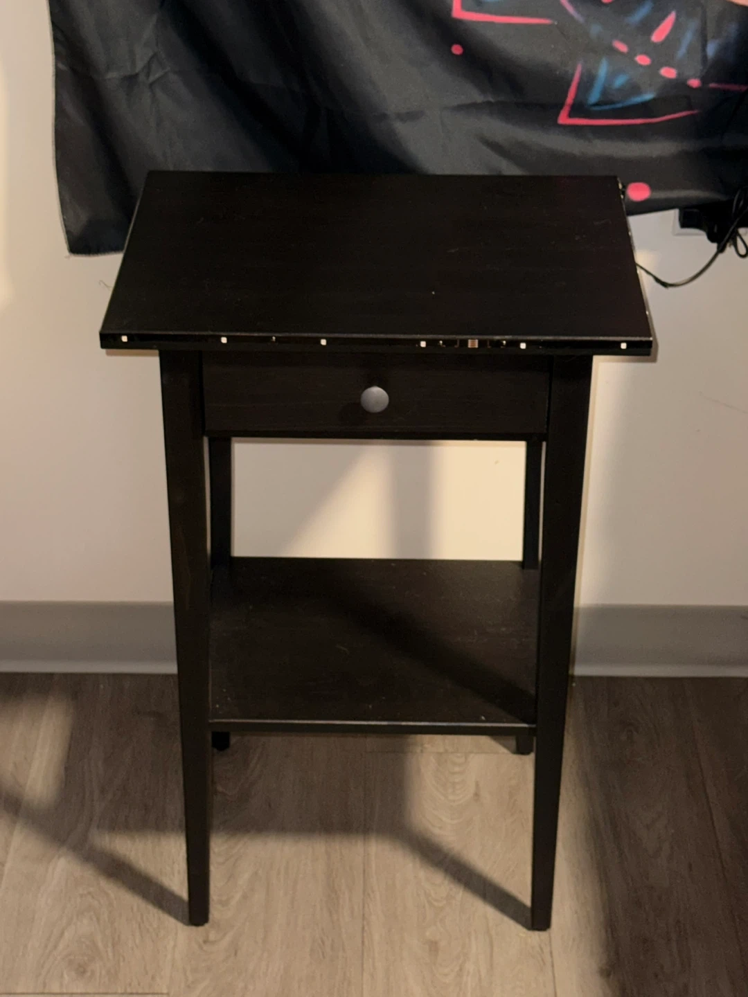 A high table that is just as convenient by the bed as in the entrance or as a side table by your favourite armchair. Made from sustainably-sourced solid wood, like other furniture in the HEMNES series. Smooth running drawer with pull-out stop. Includes the assembly instructions.