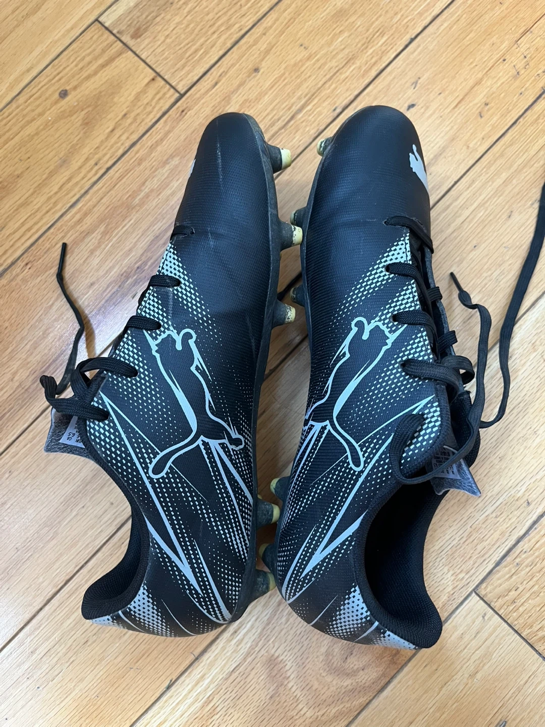 Good condition. Only wear once, not fit for me. Pickup at Stouffville or Markham . Black Puma soccer cleats with white accents. Features lace-up closure and cleated sole. Size 6.5 US.
